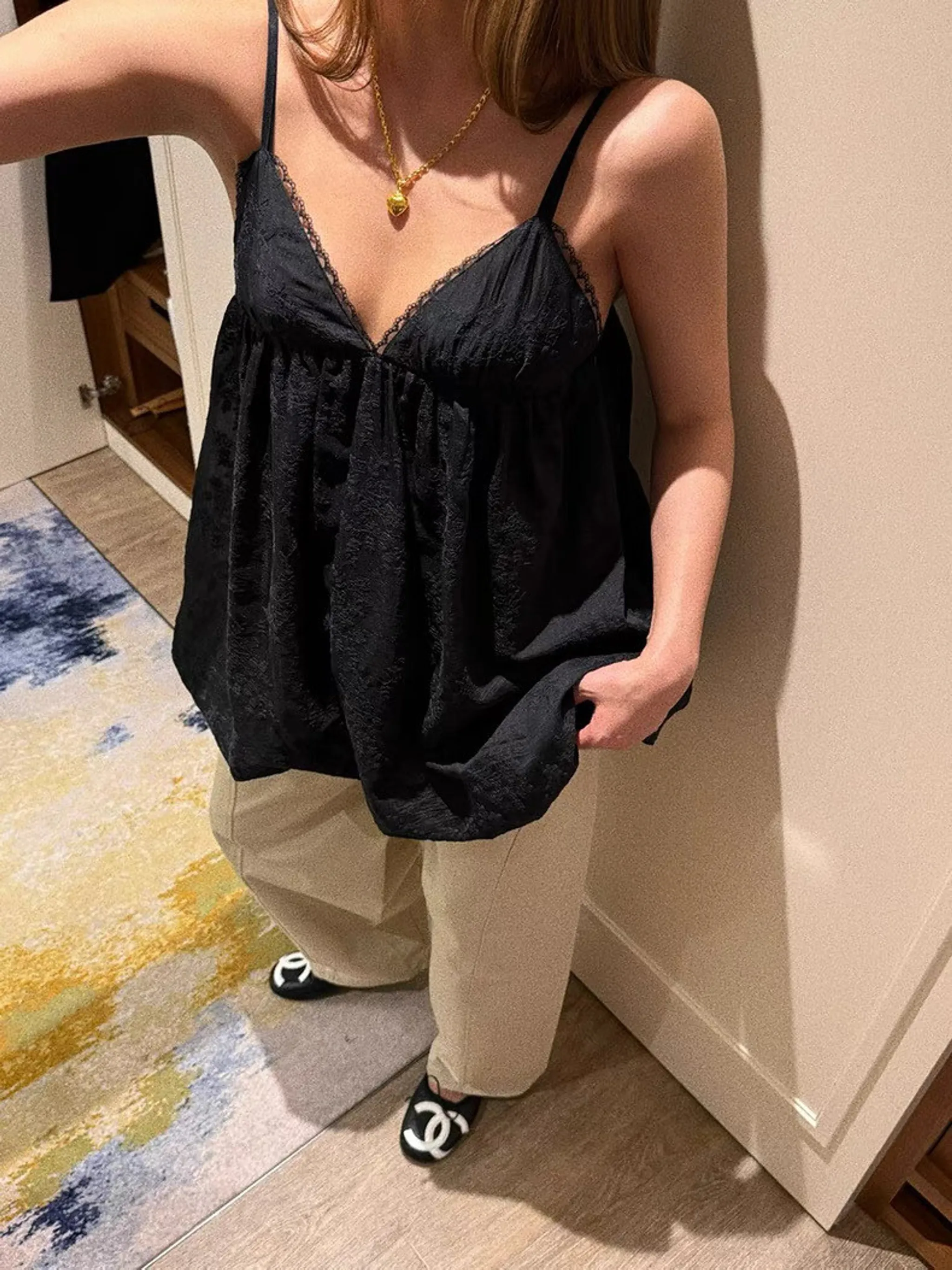 精緻緹花細肩蕾絲背心|2色