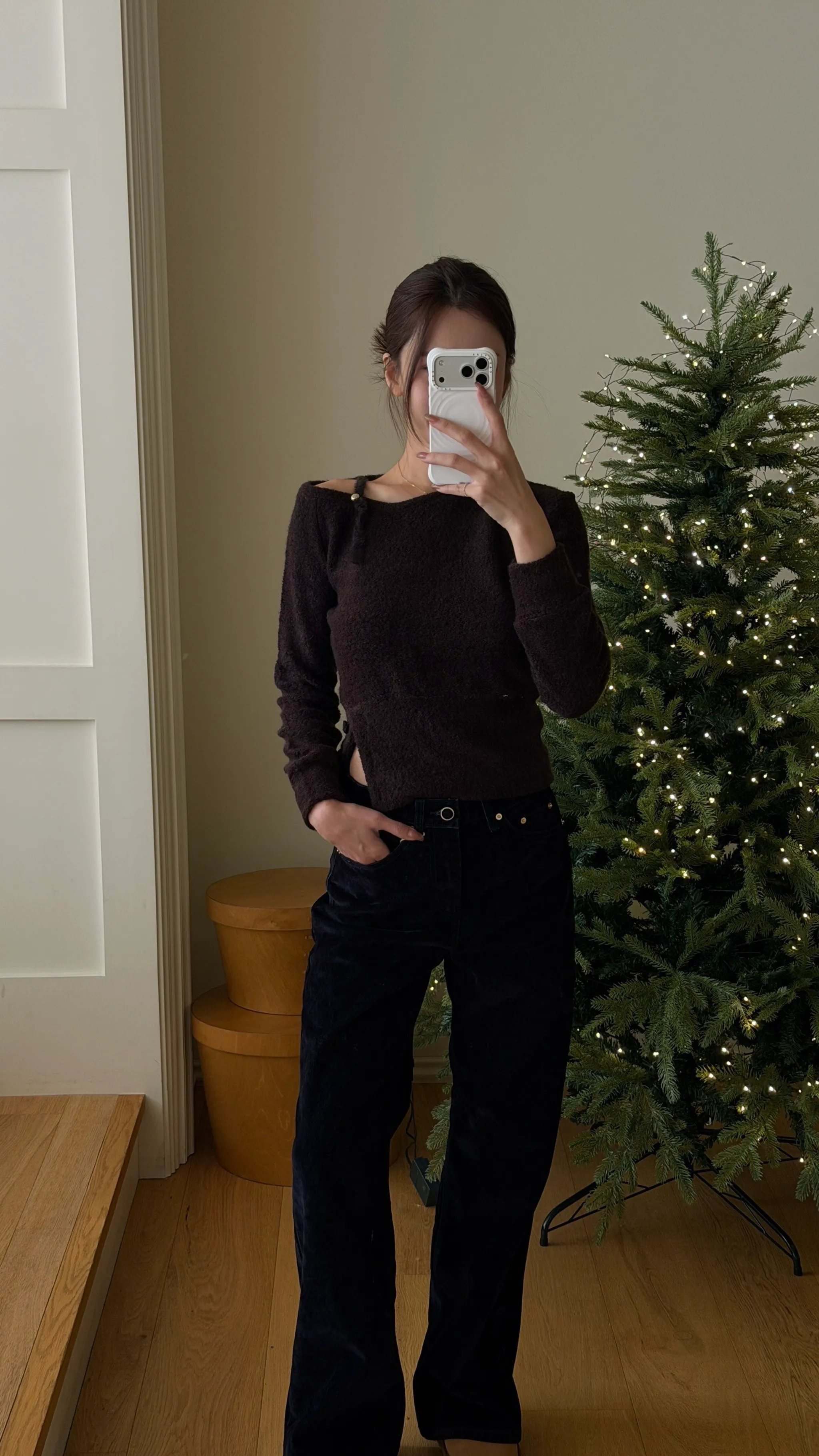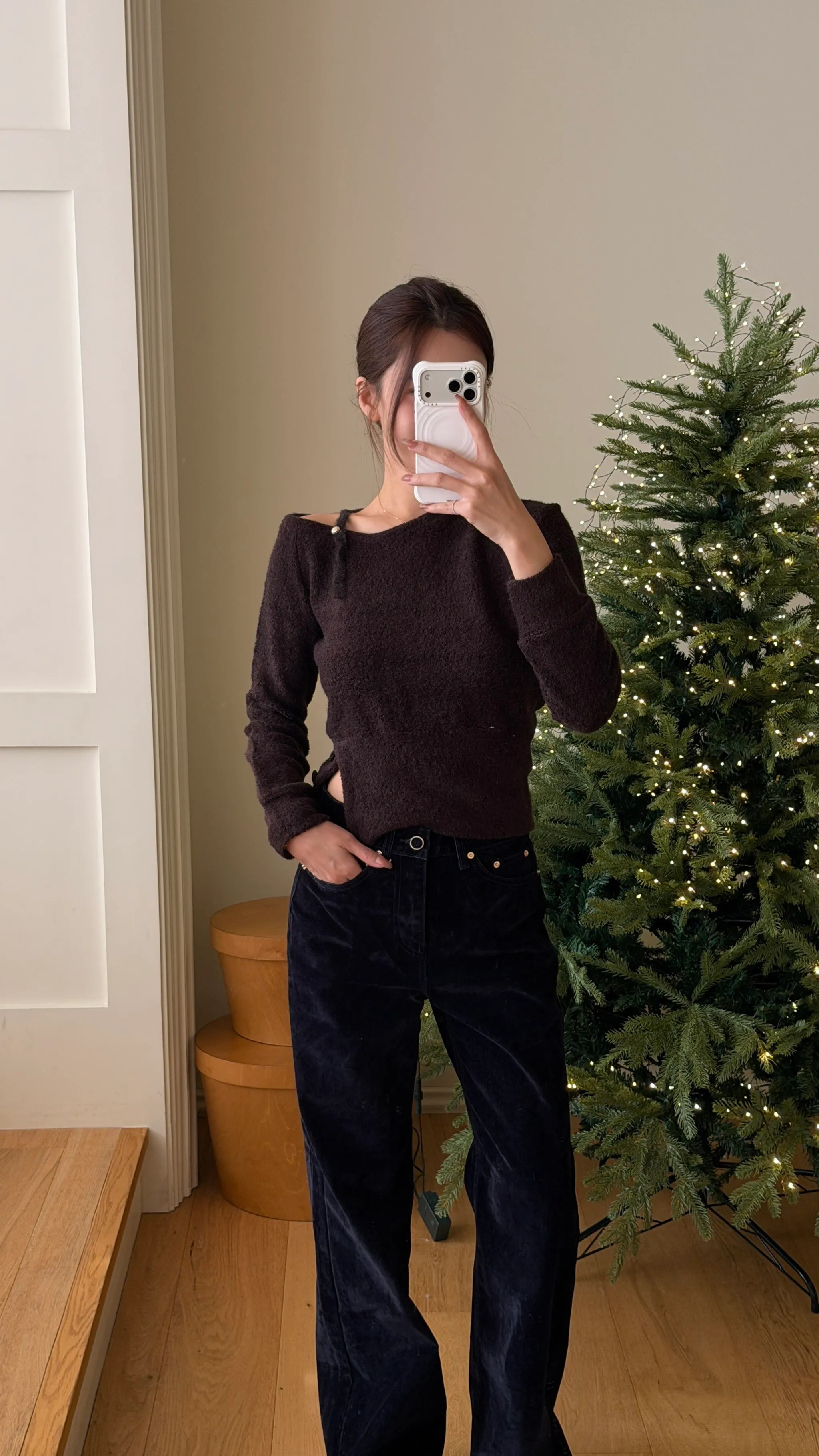 心機單肩帶毛絨斜領上衣|3色