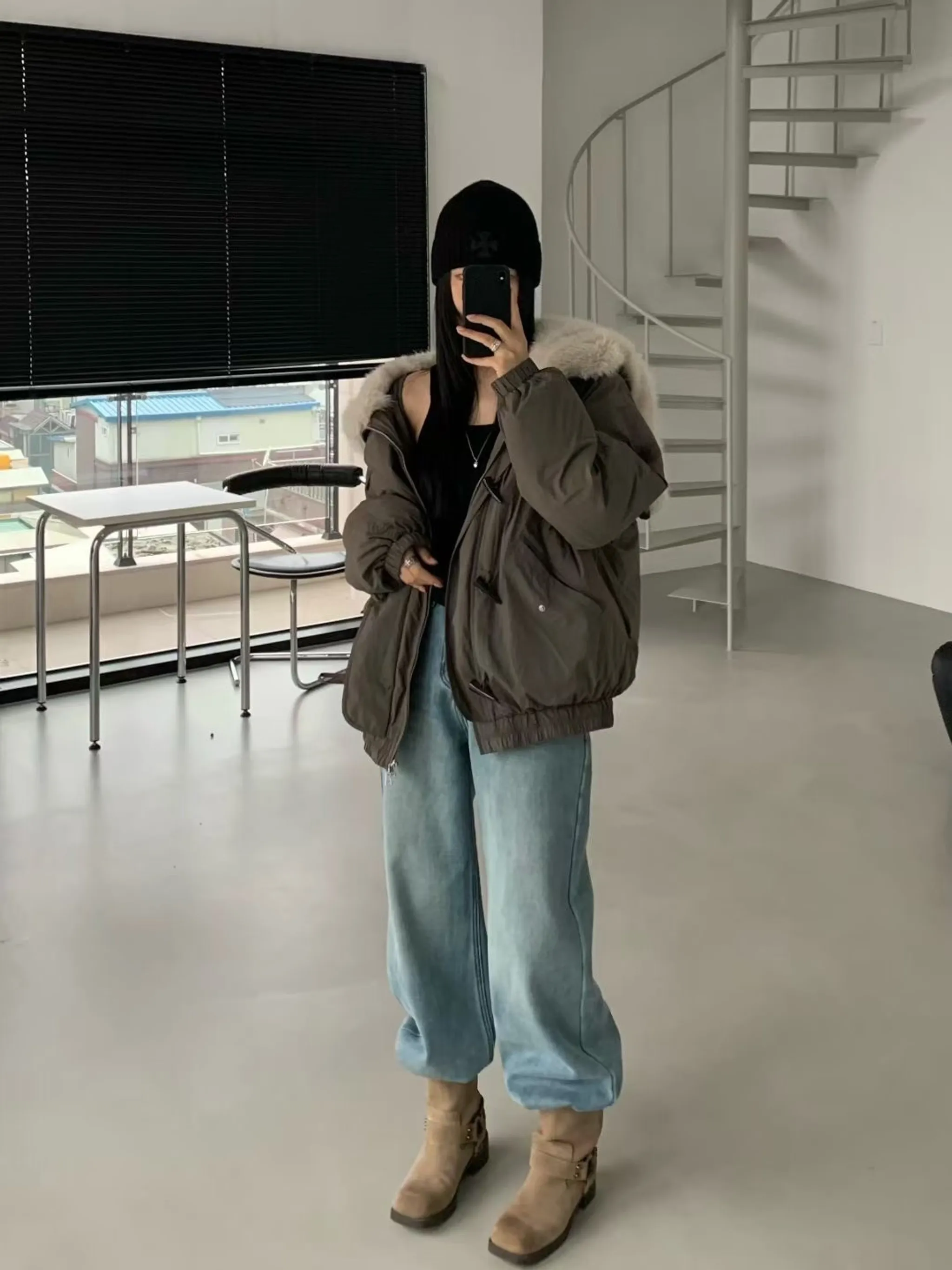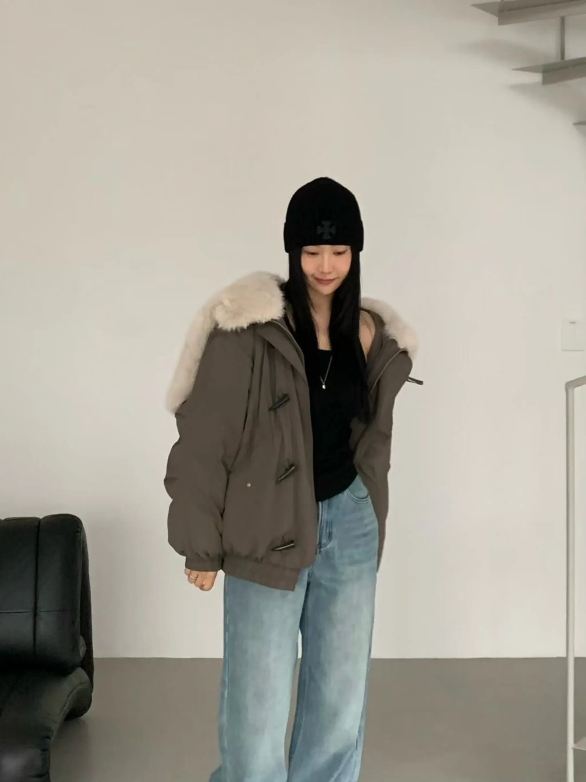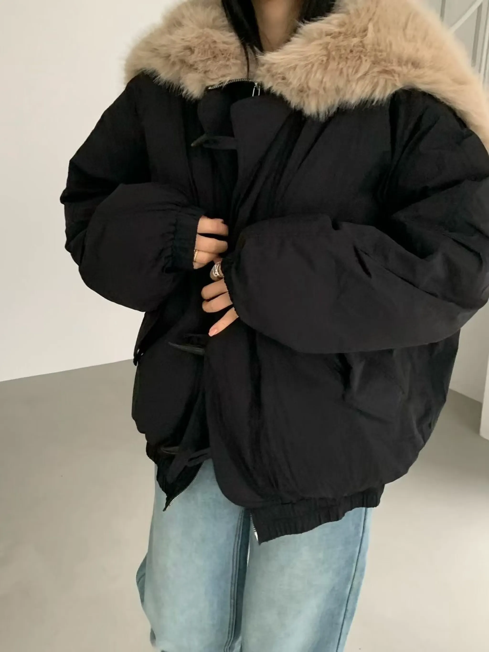 可拆毛領牛角鴨絨夾克|2色
