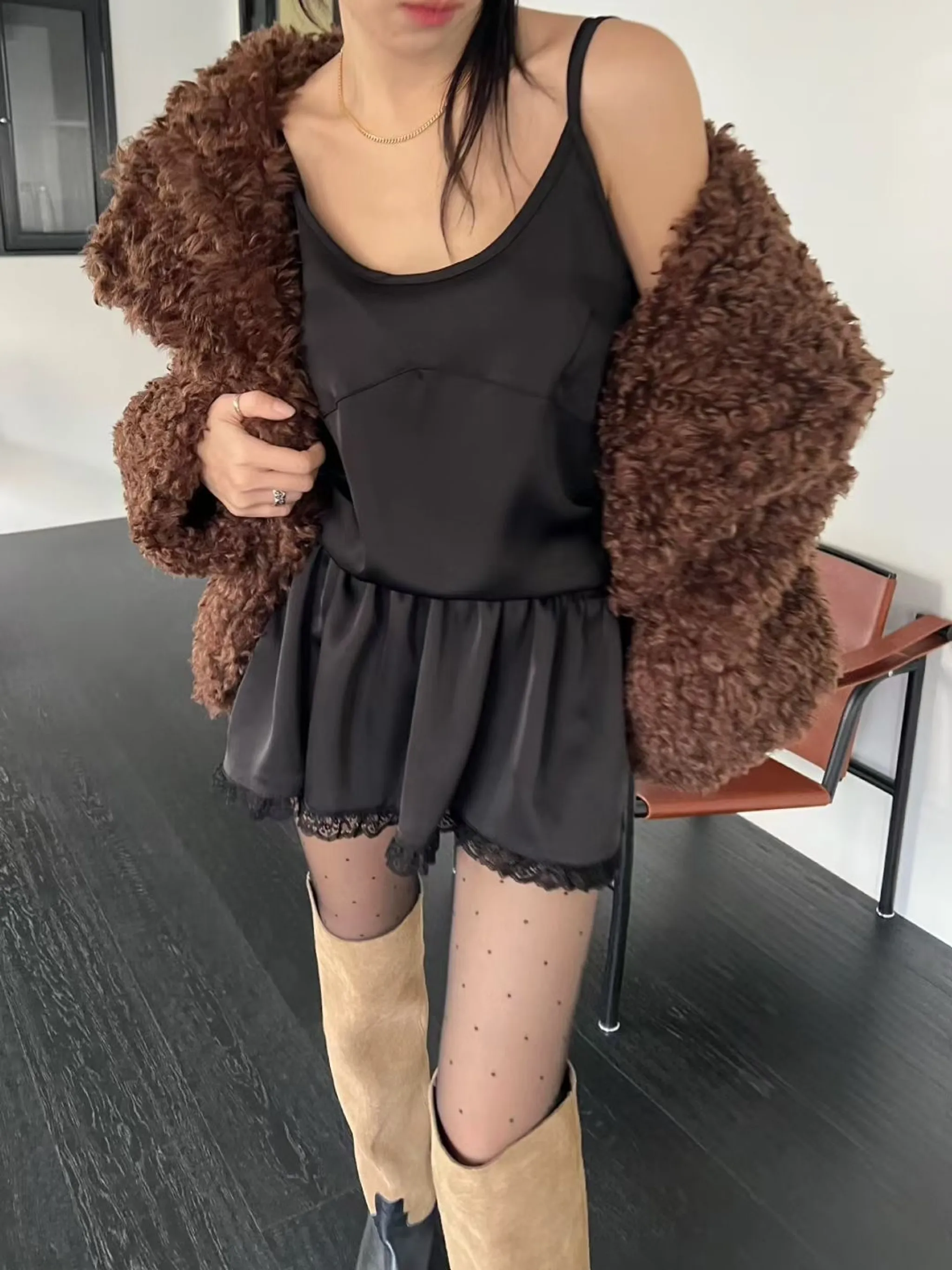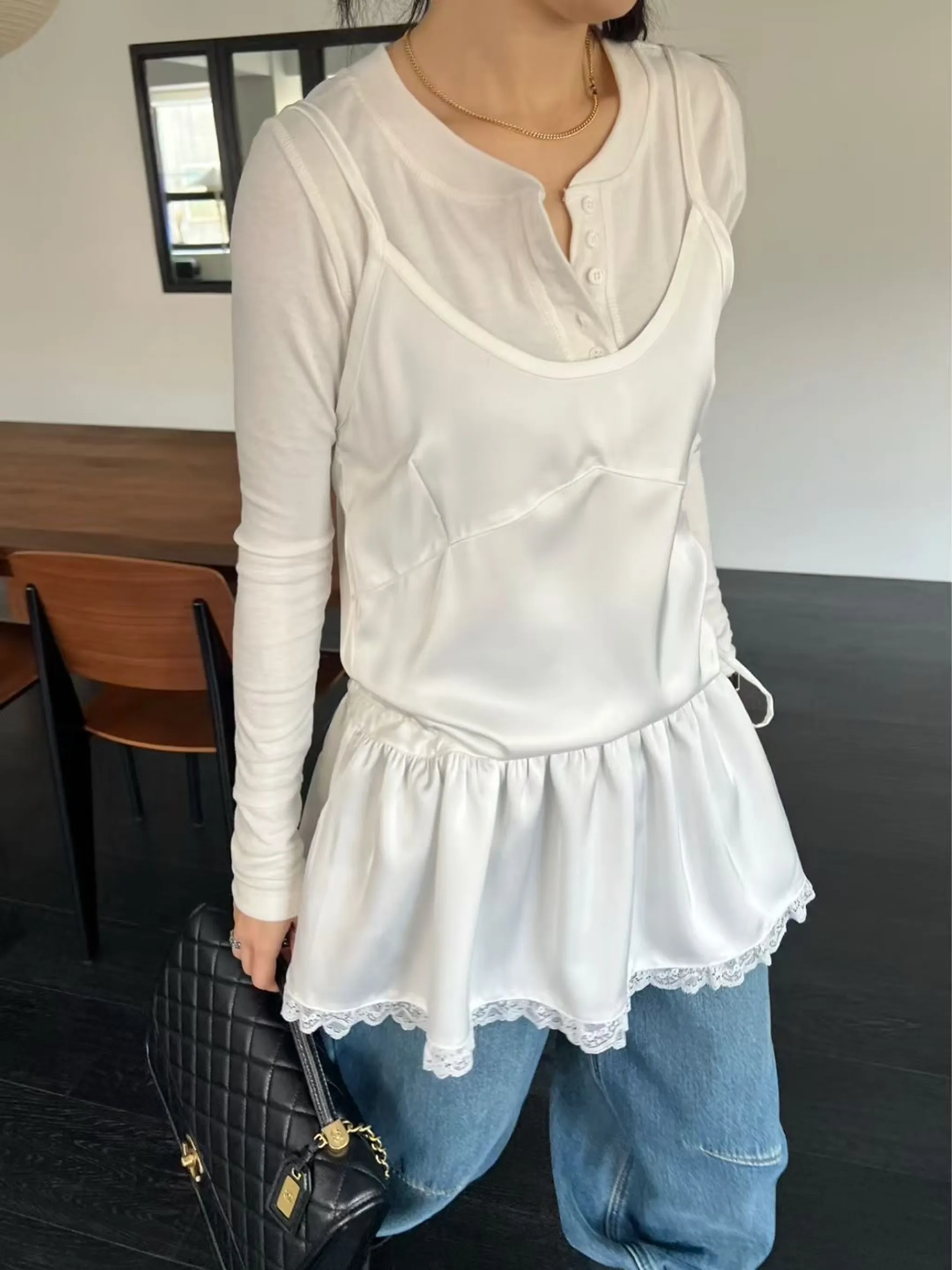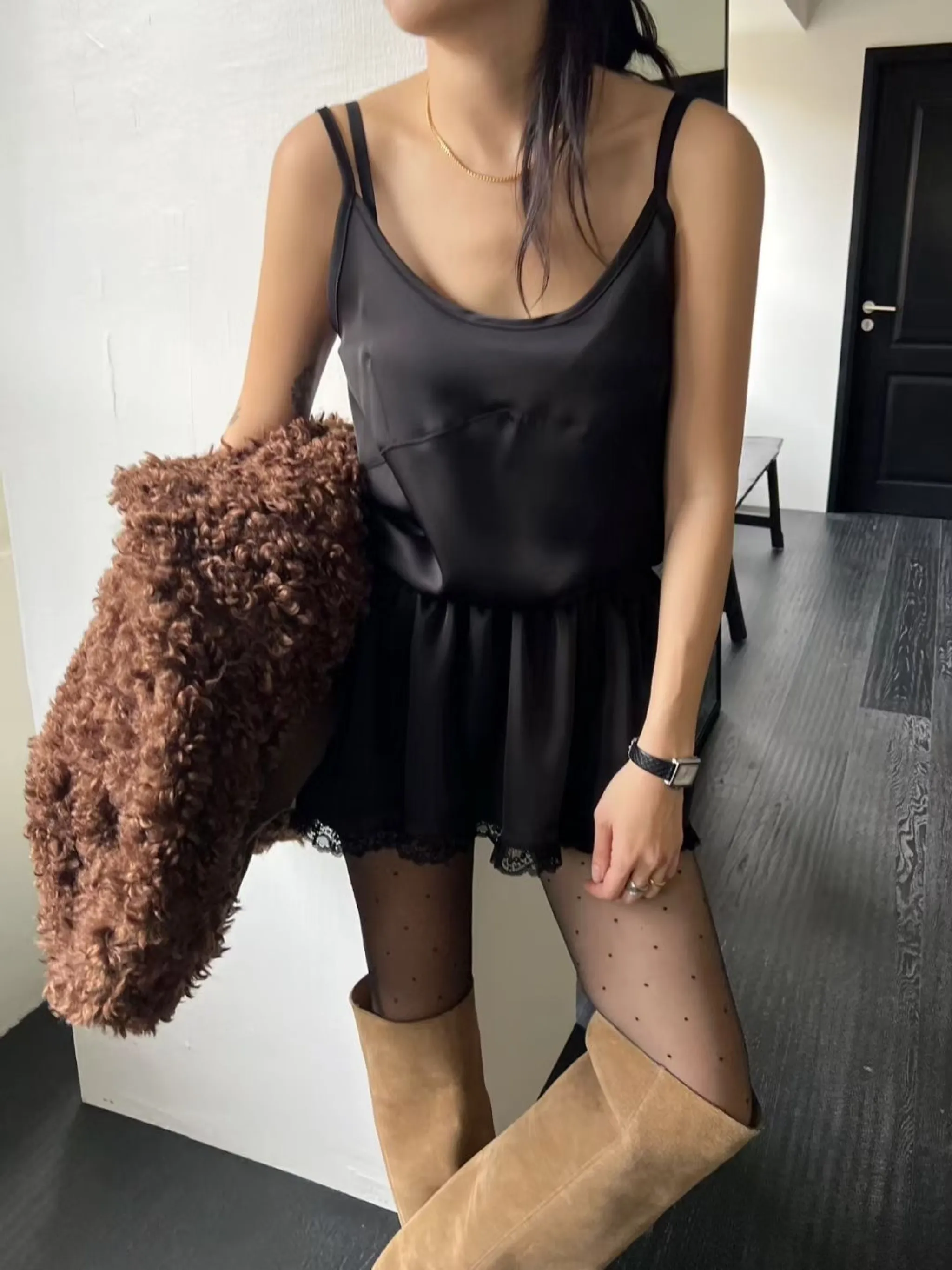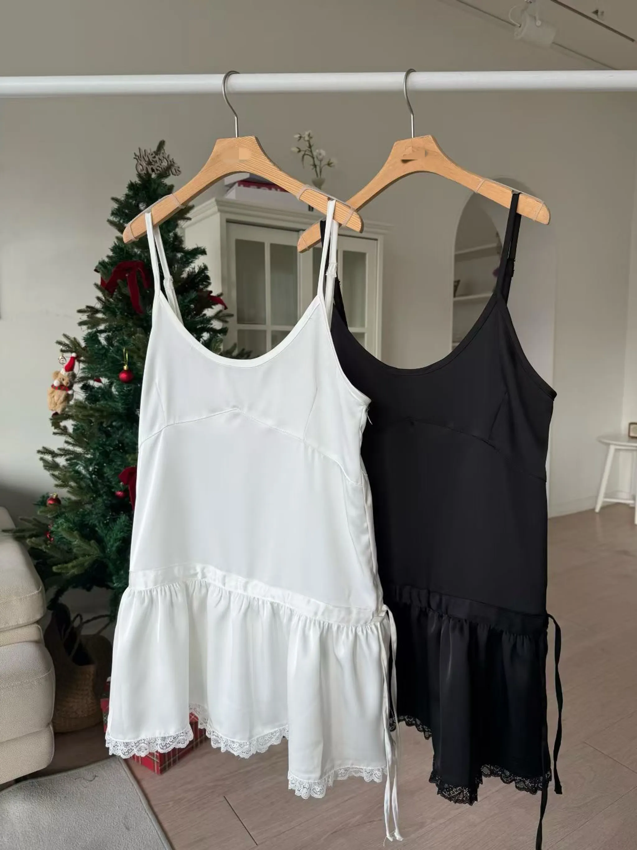 光澤感荷葉邊連身裙|2色