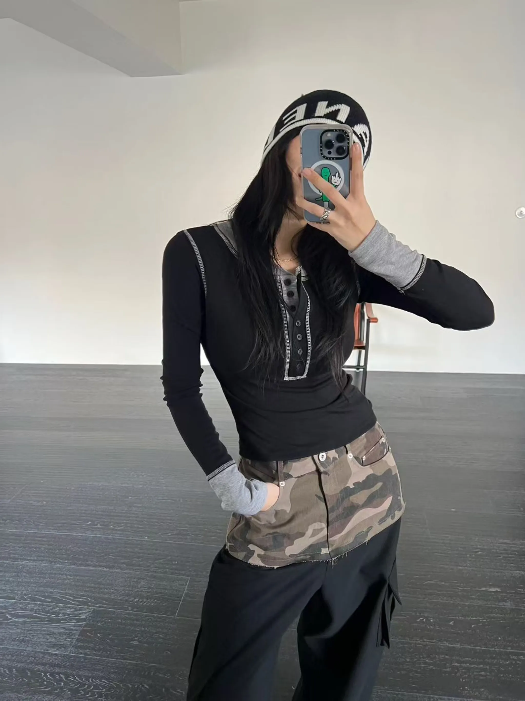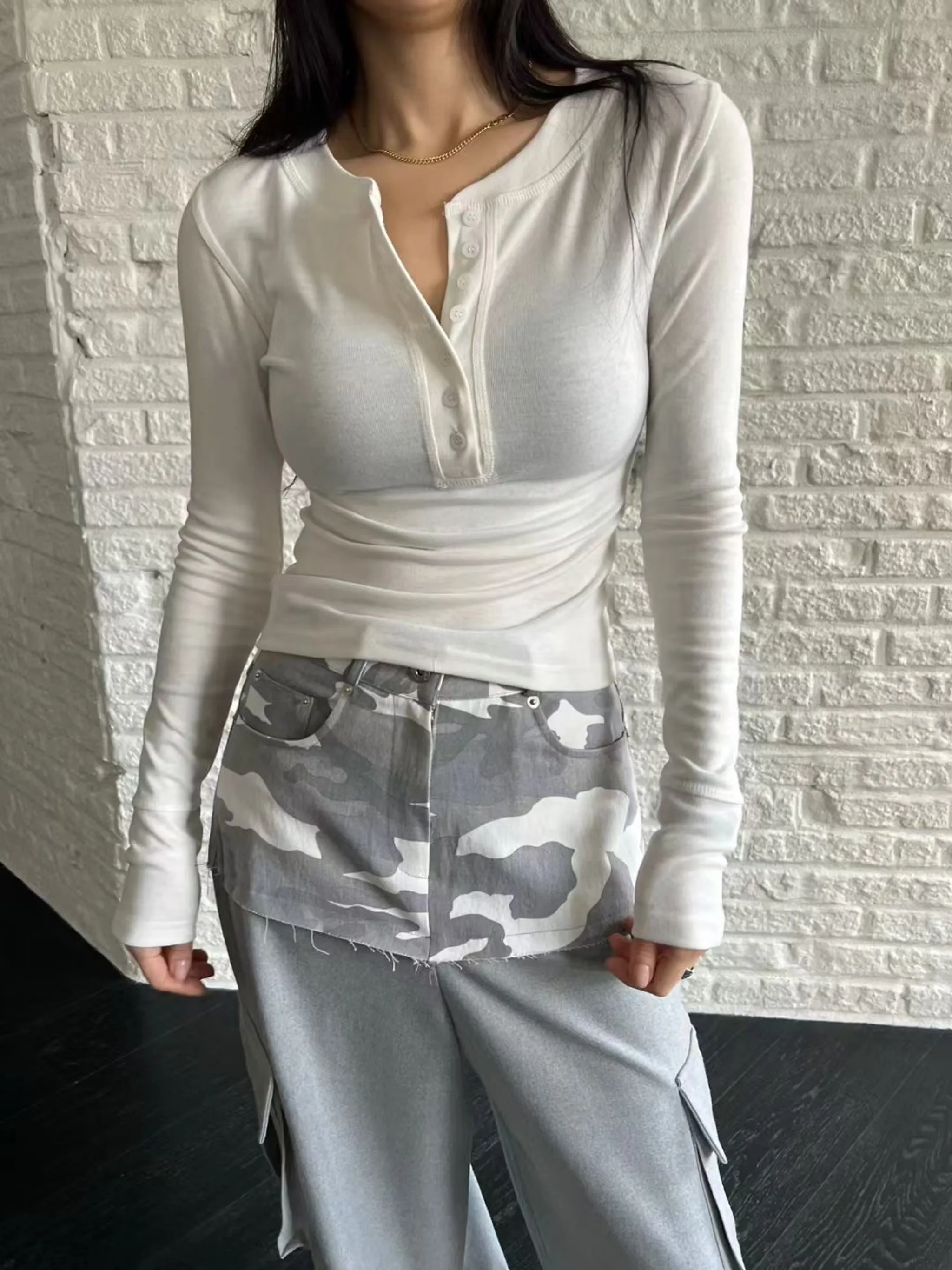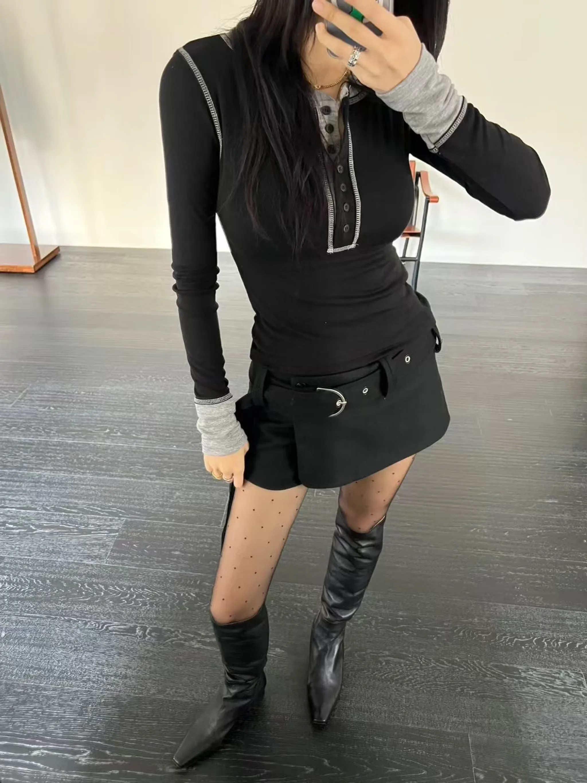 車線排扣修身打底衫|2色