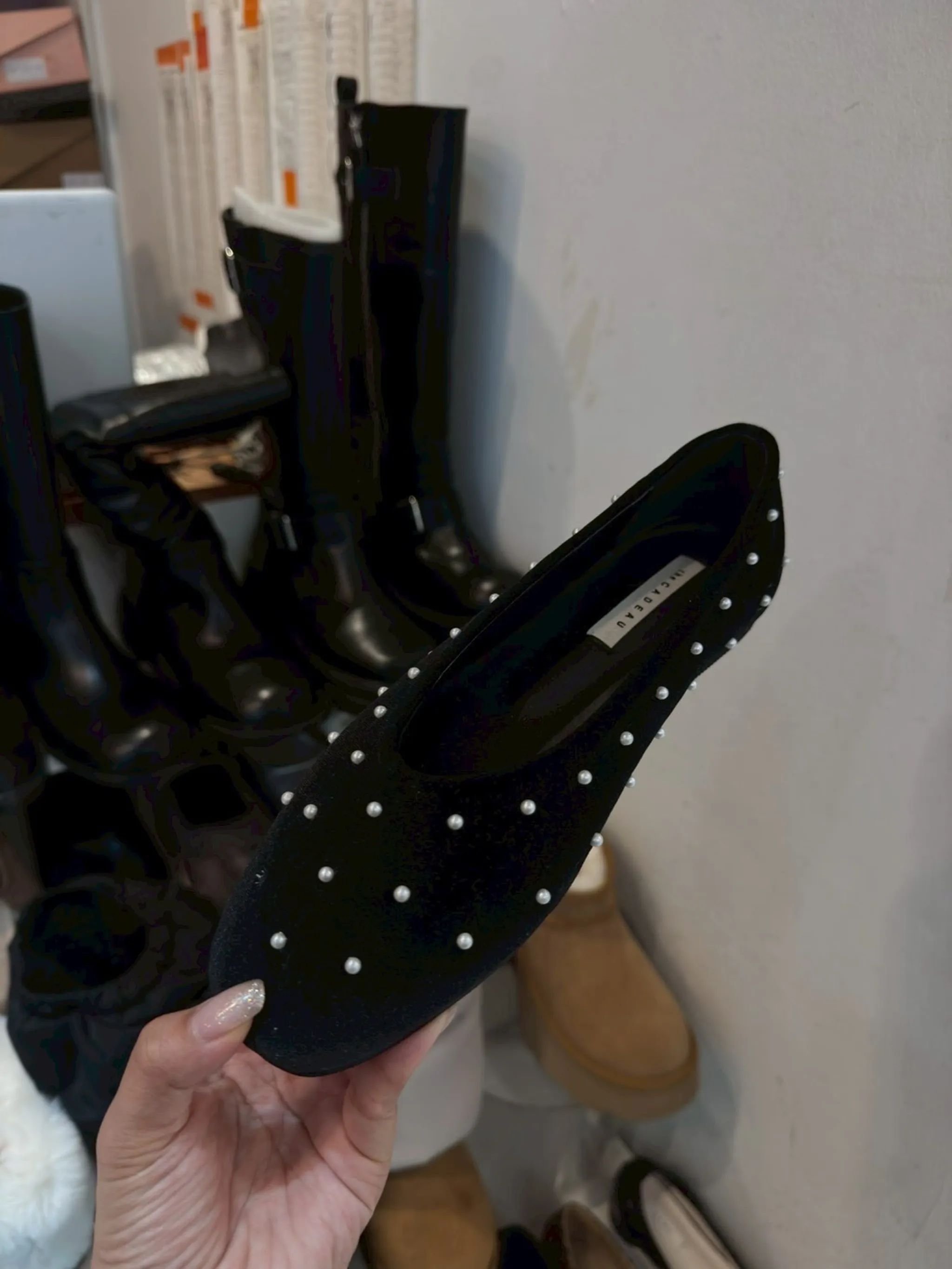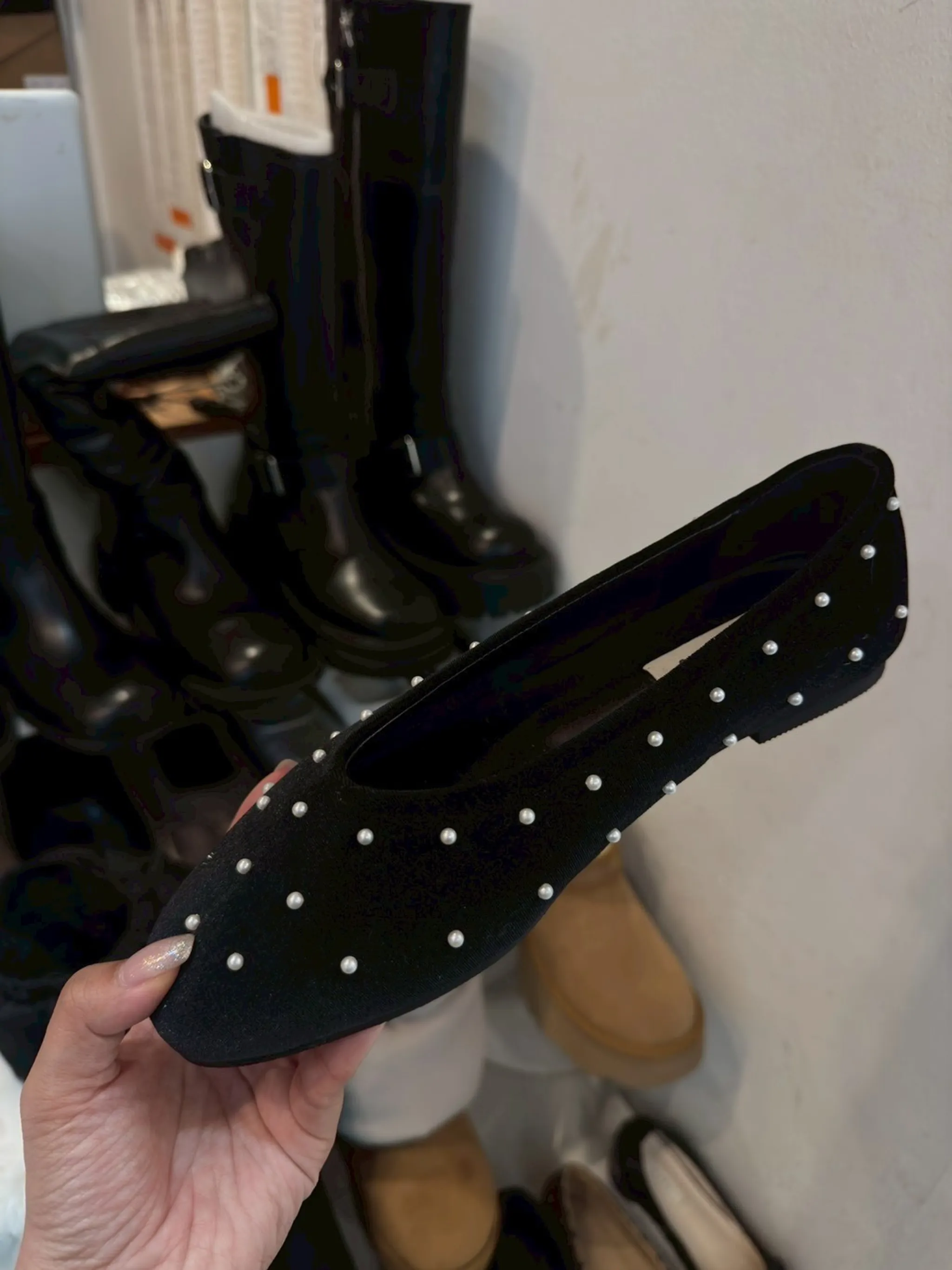 植絨珍珠平底娃娃鞋