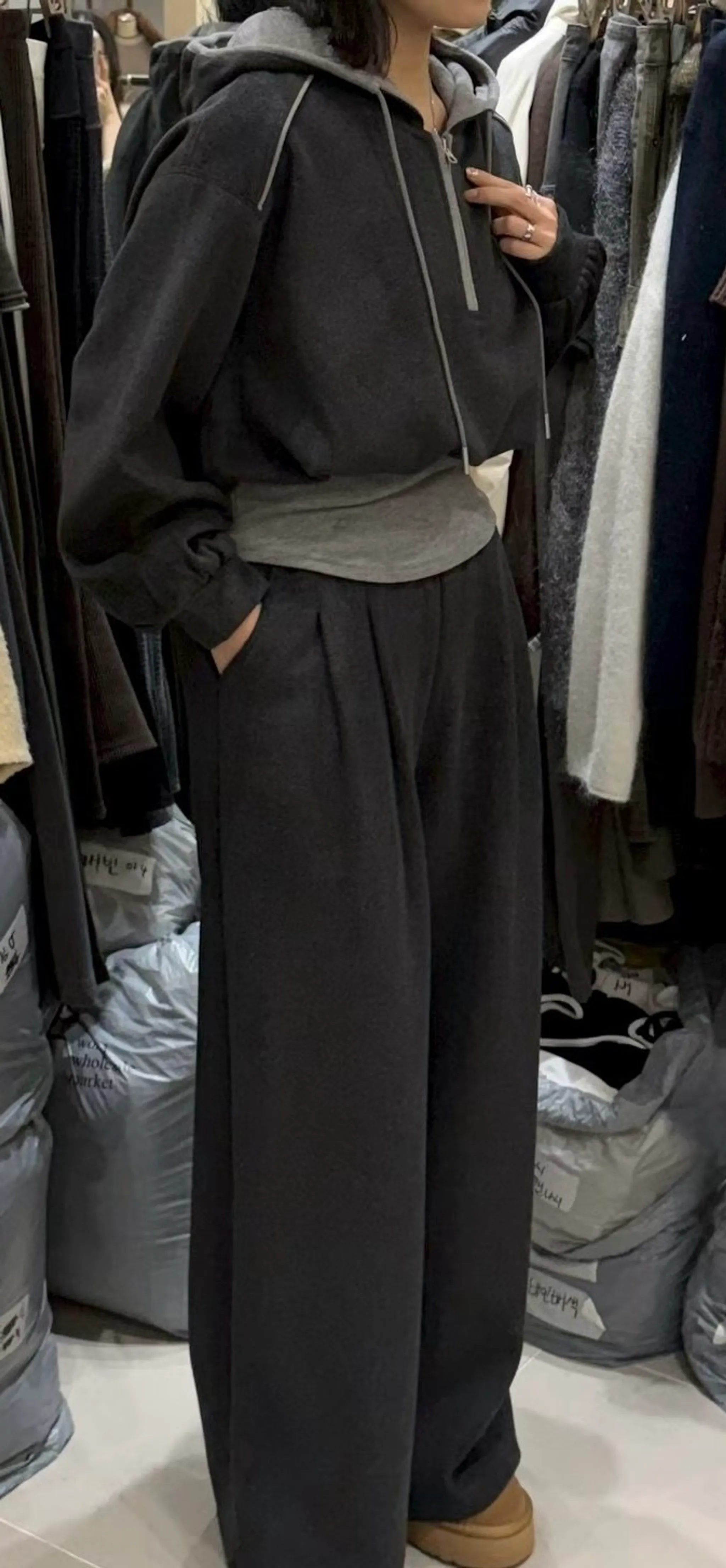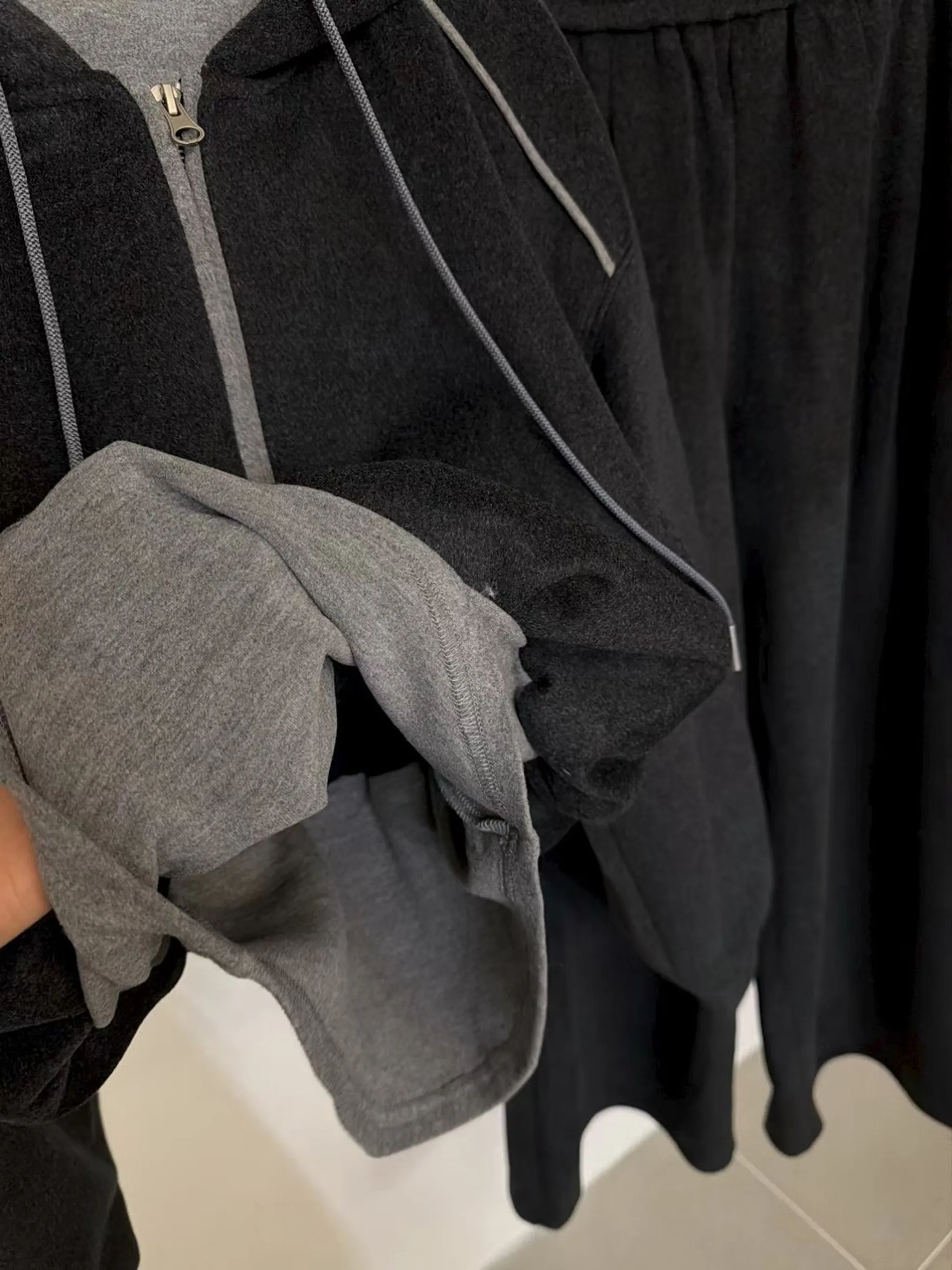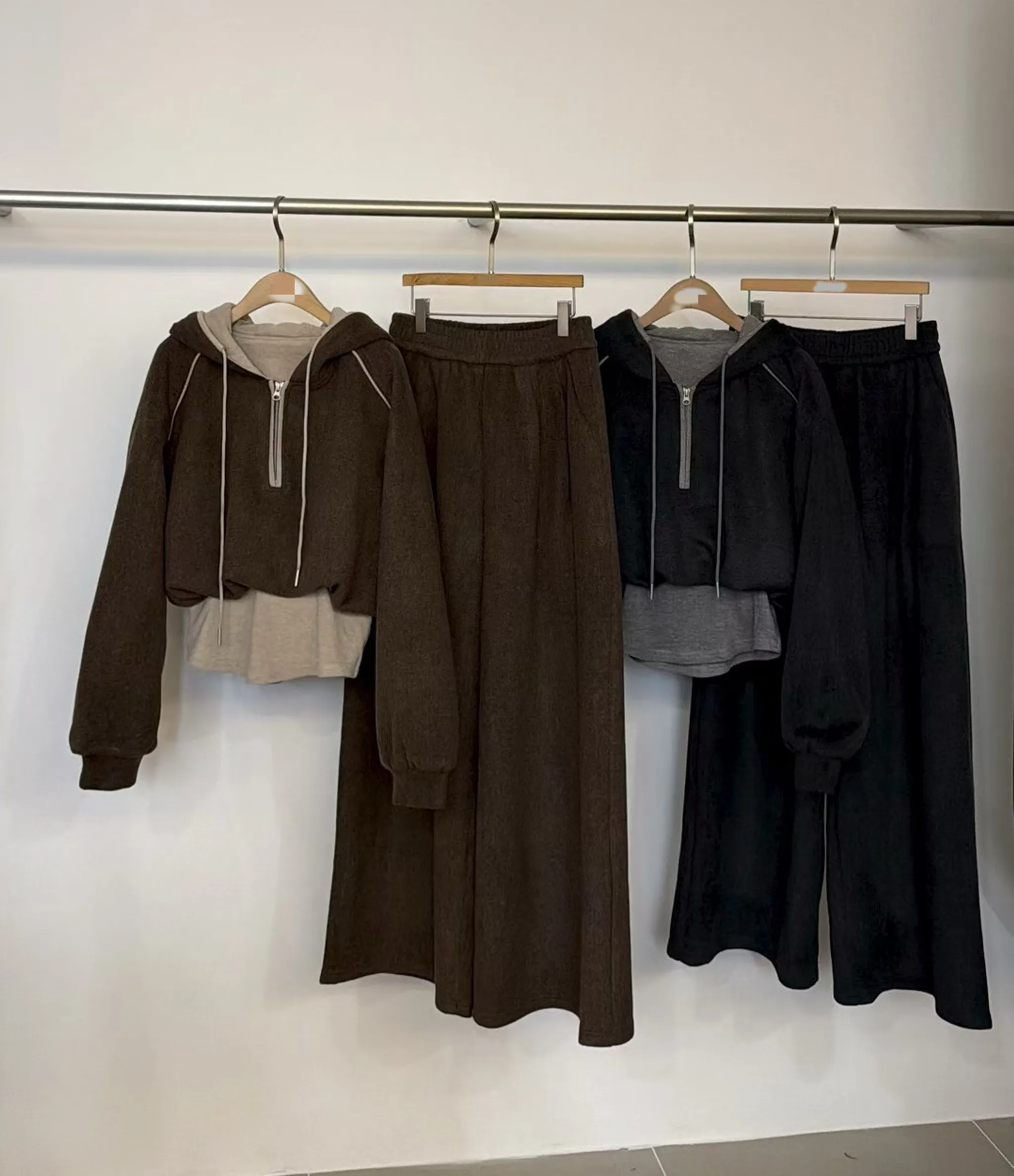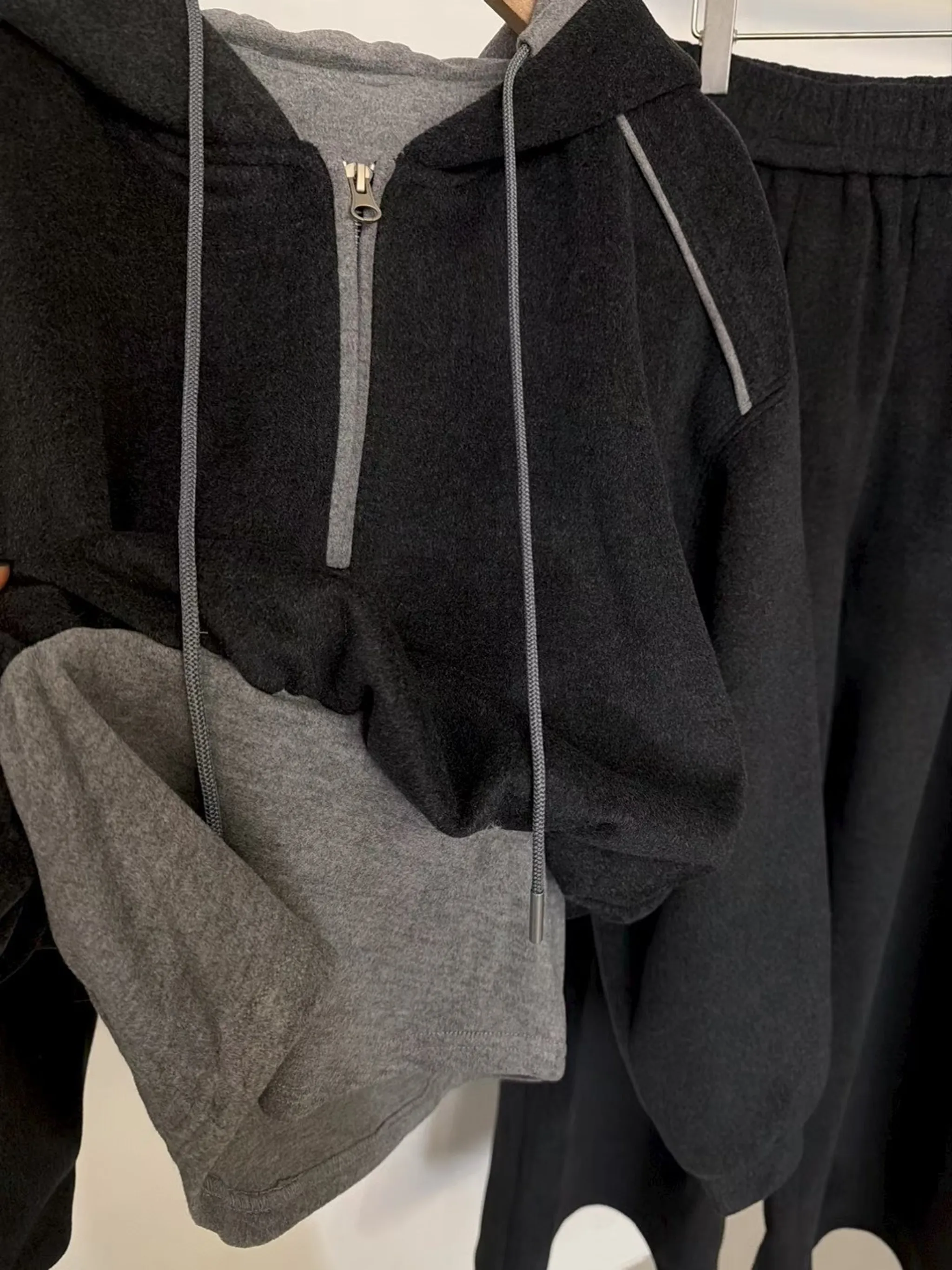 時髦休閒拼色連帽套裝|2色