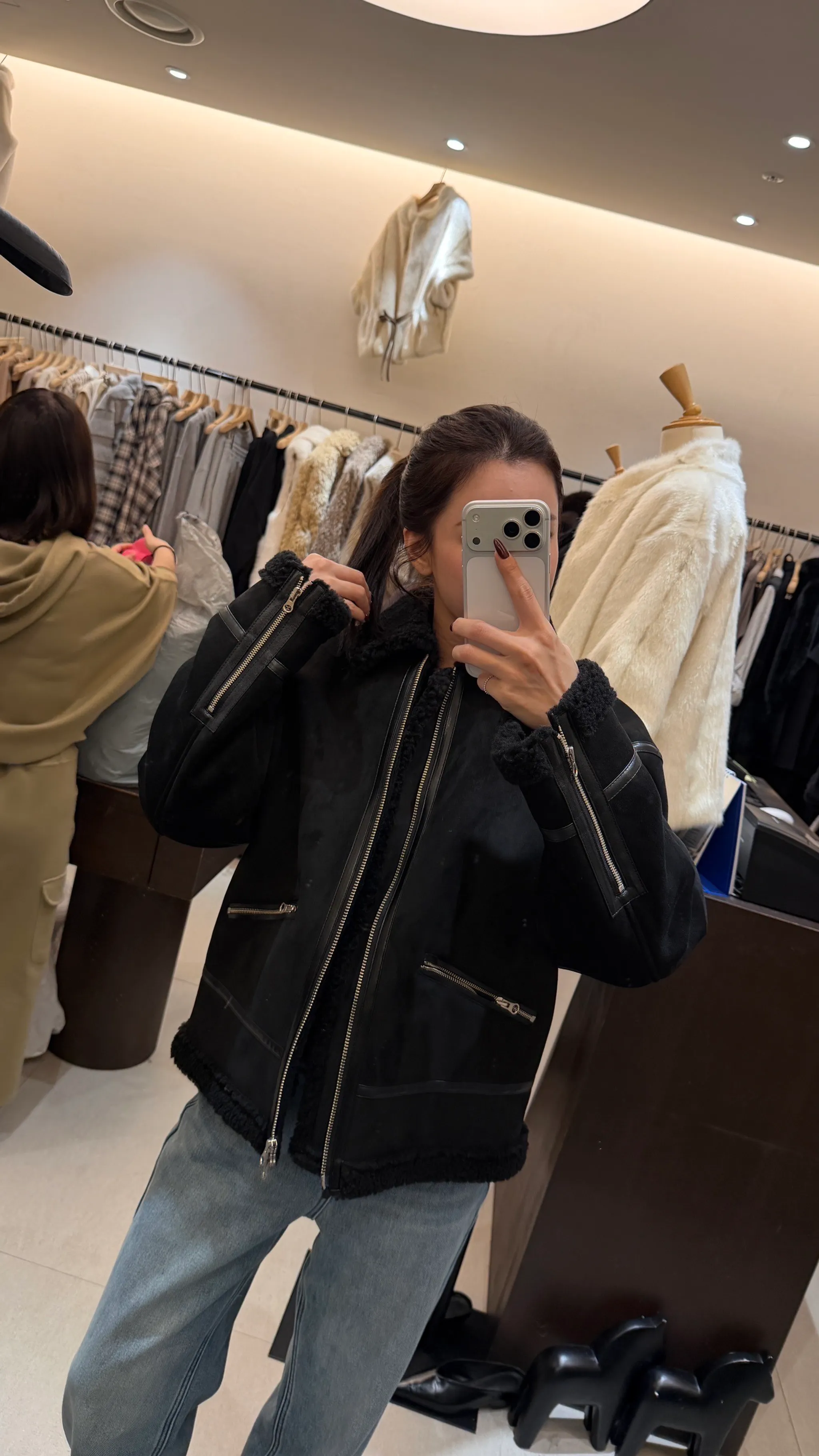 現特•帥氣翻領幾皮拼接外套