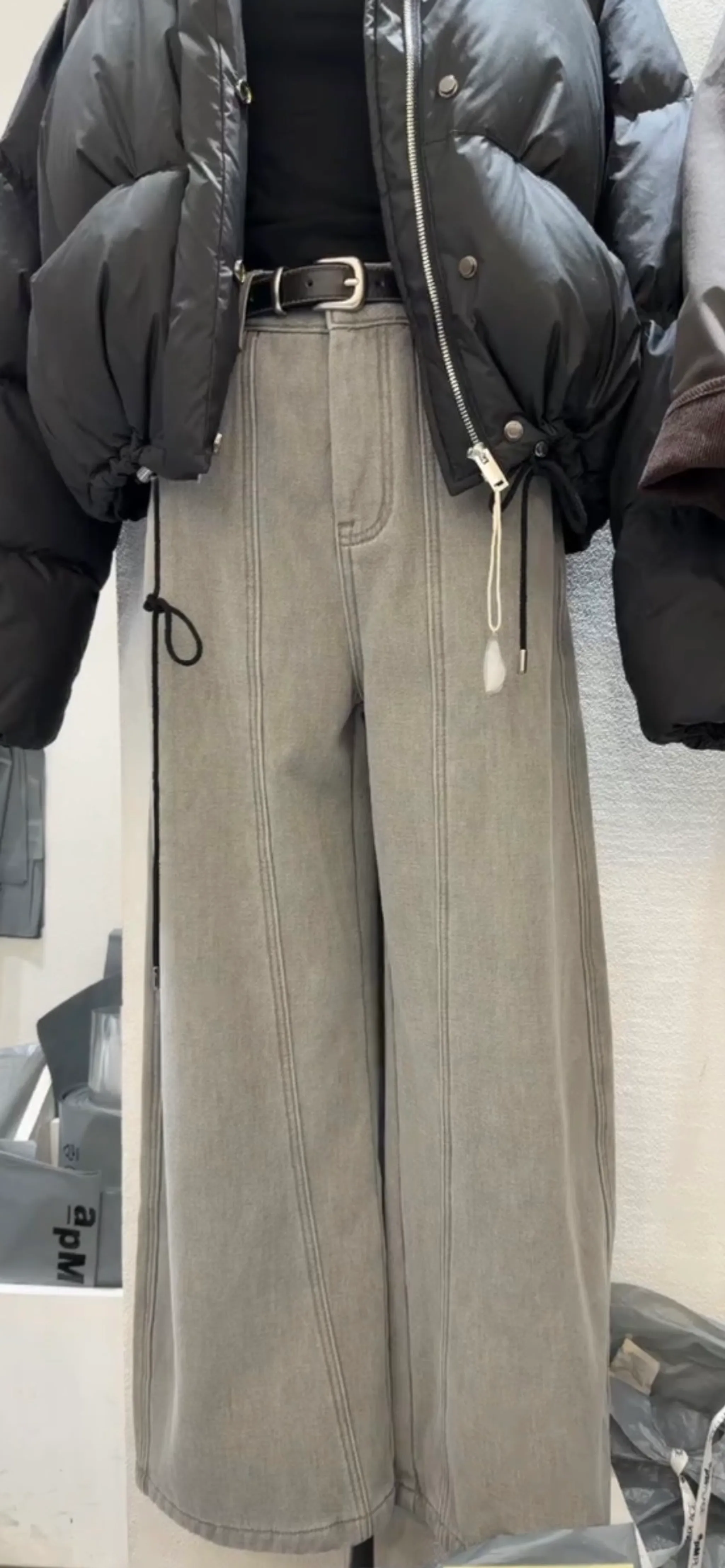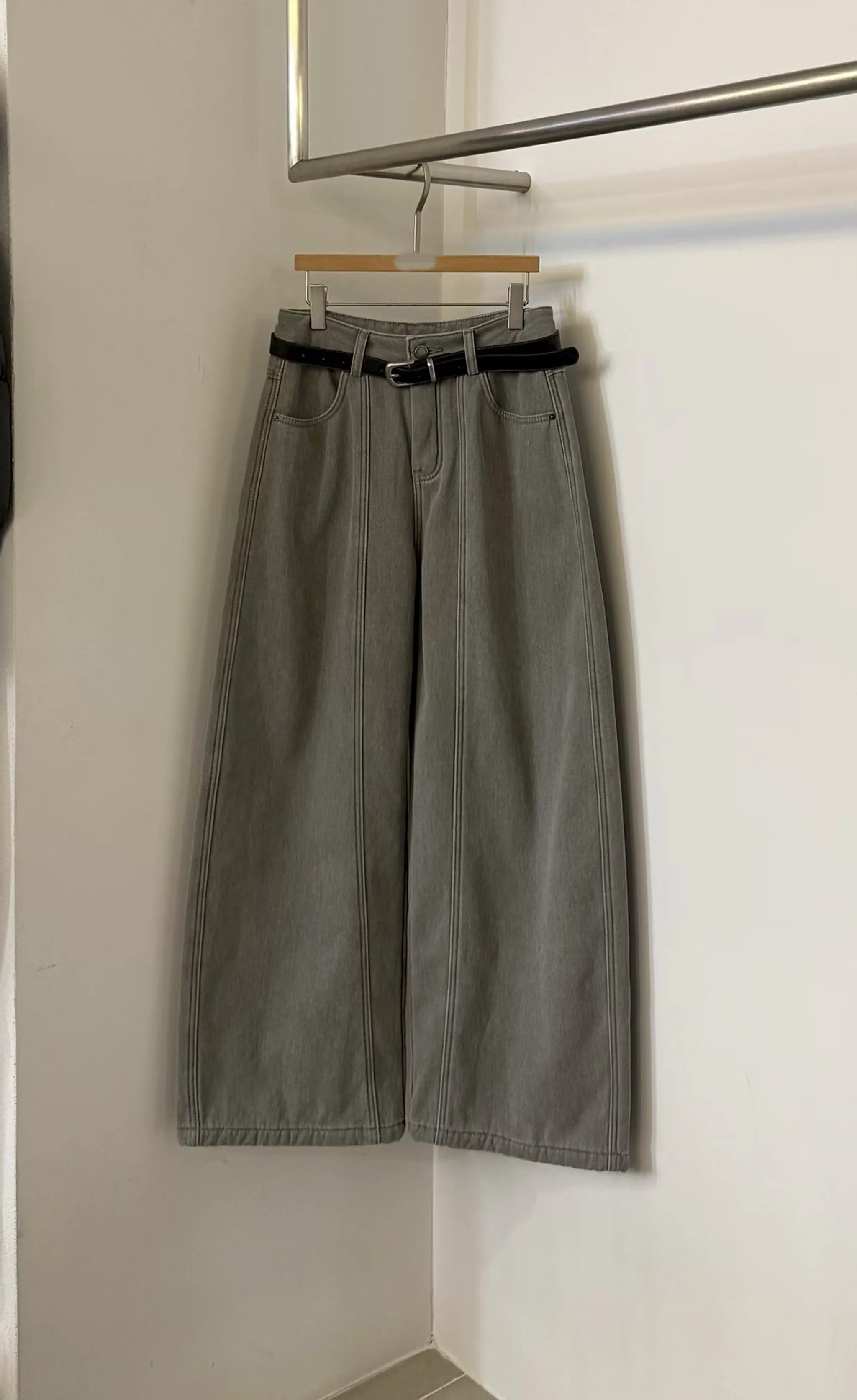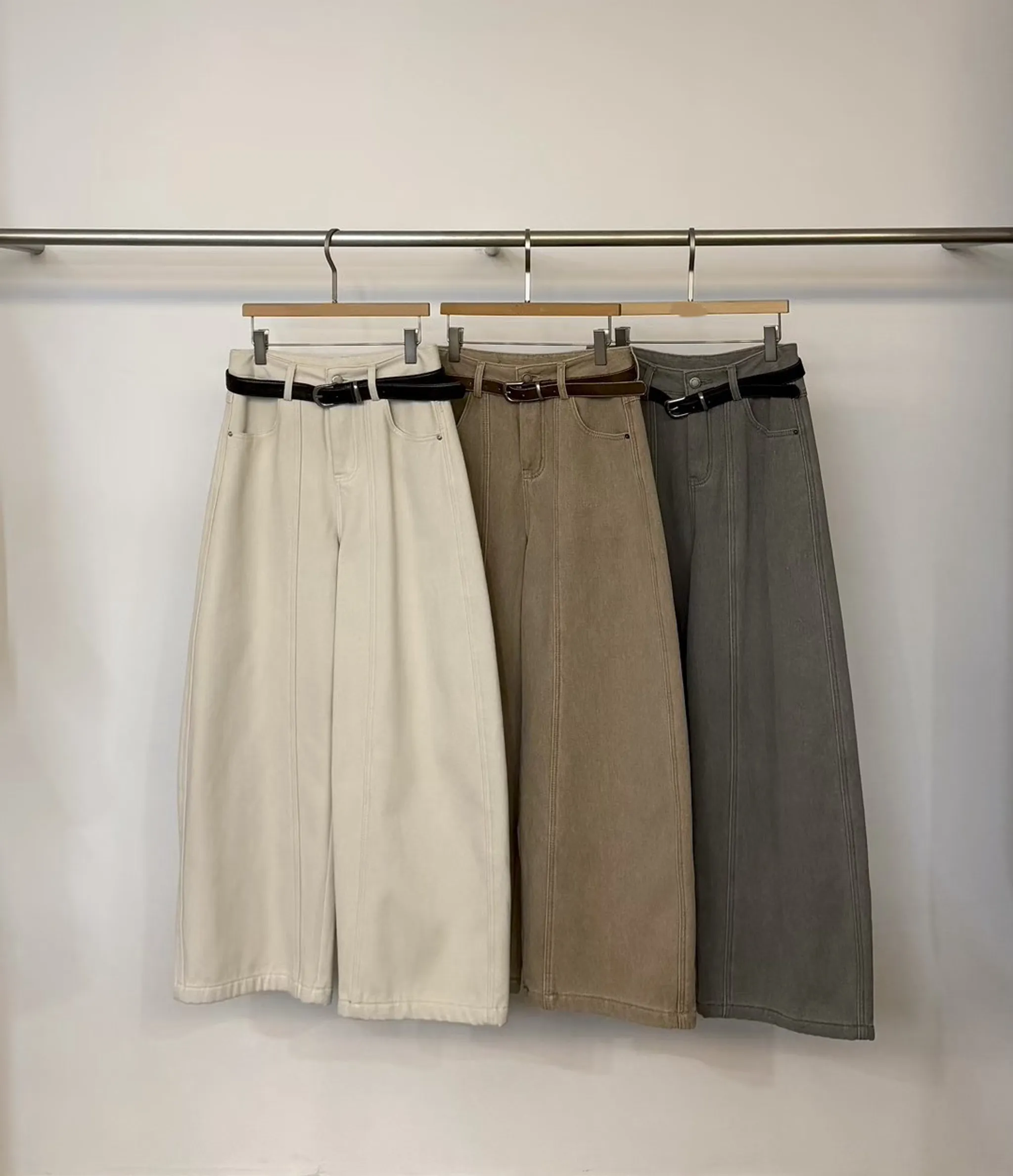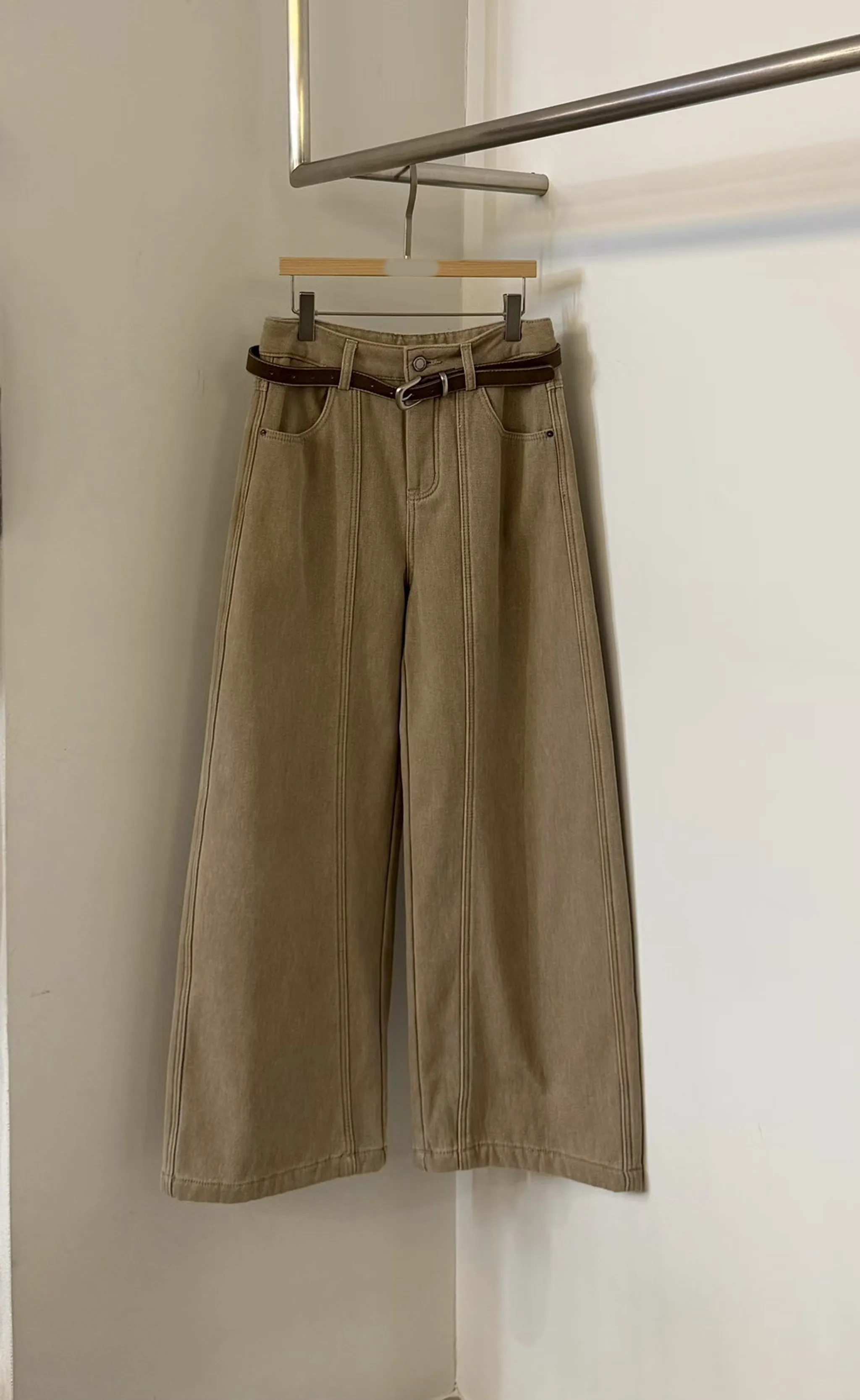 個性車線顯瘦闊腿寬褲(含皮帶)|3色