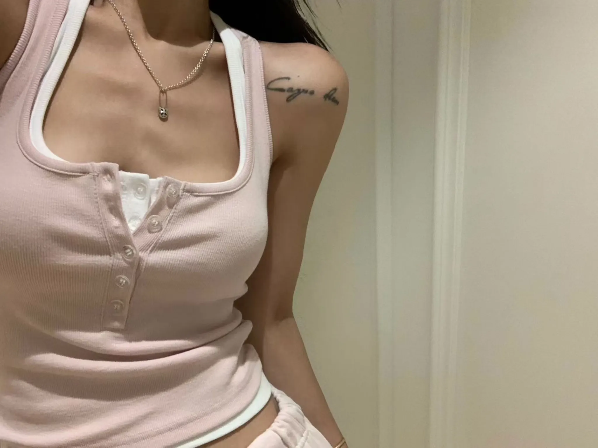 ✨歐膩是穿兩色背心打造疊穿效果