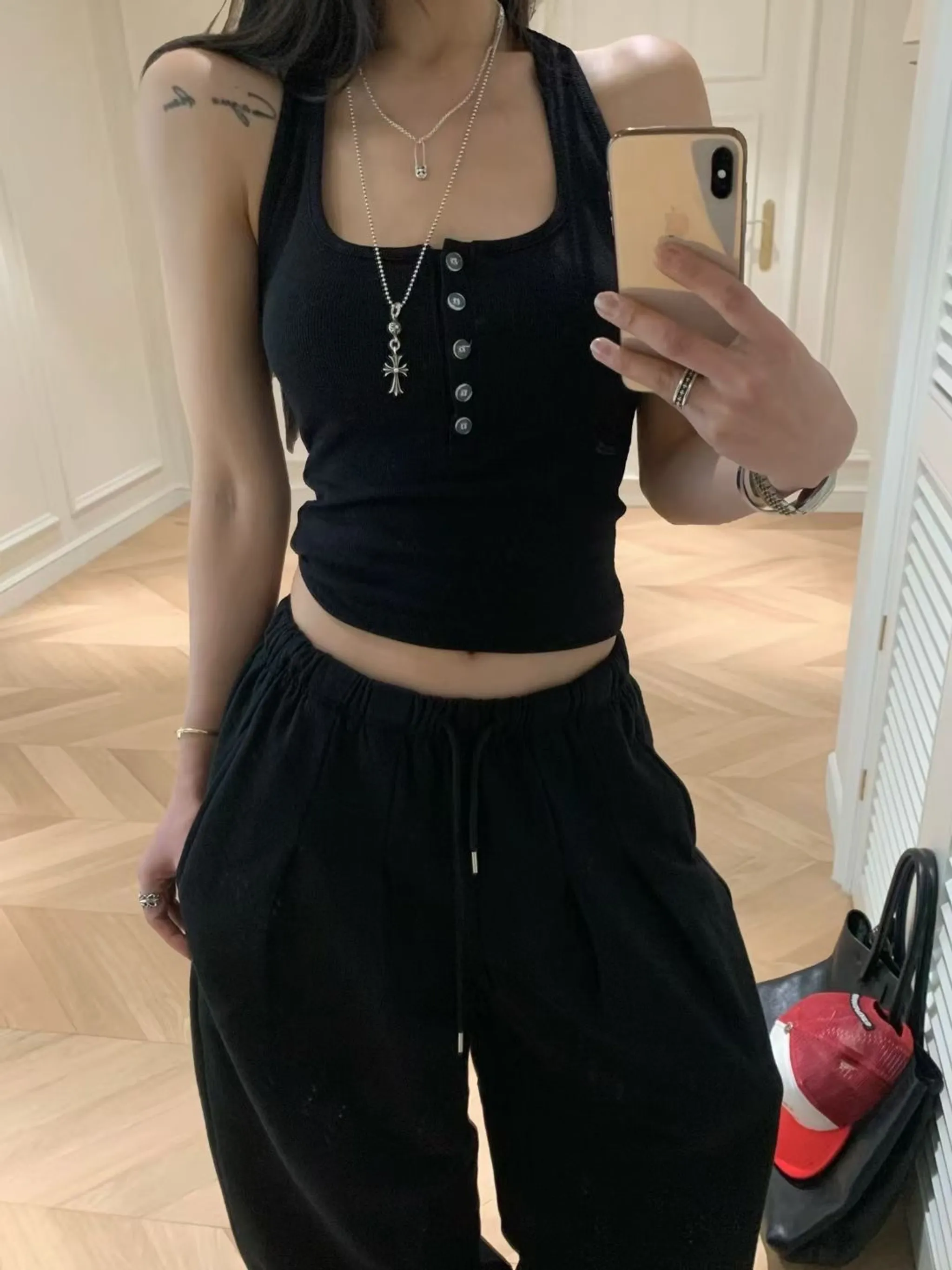 排釦設計感背心與落地抽繩褲套裝|5色