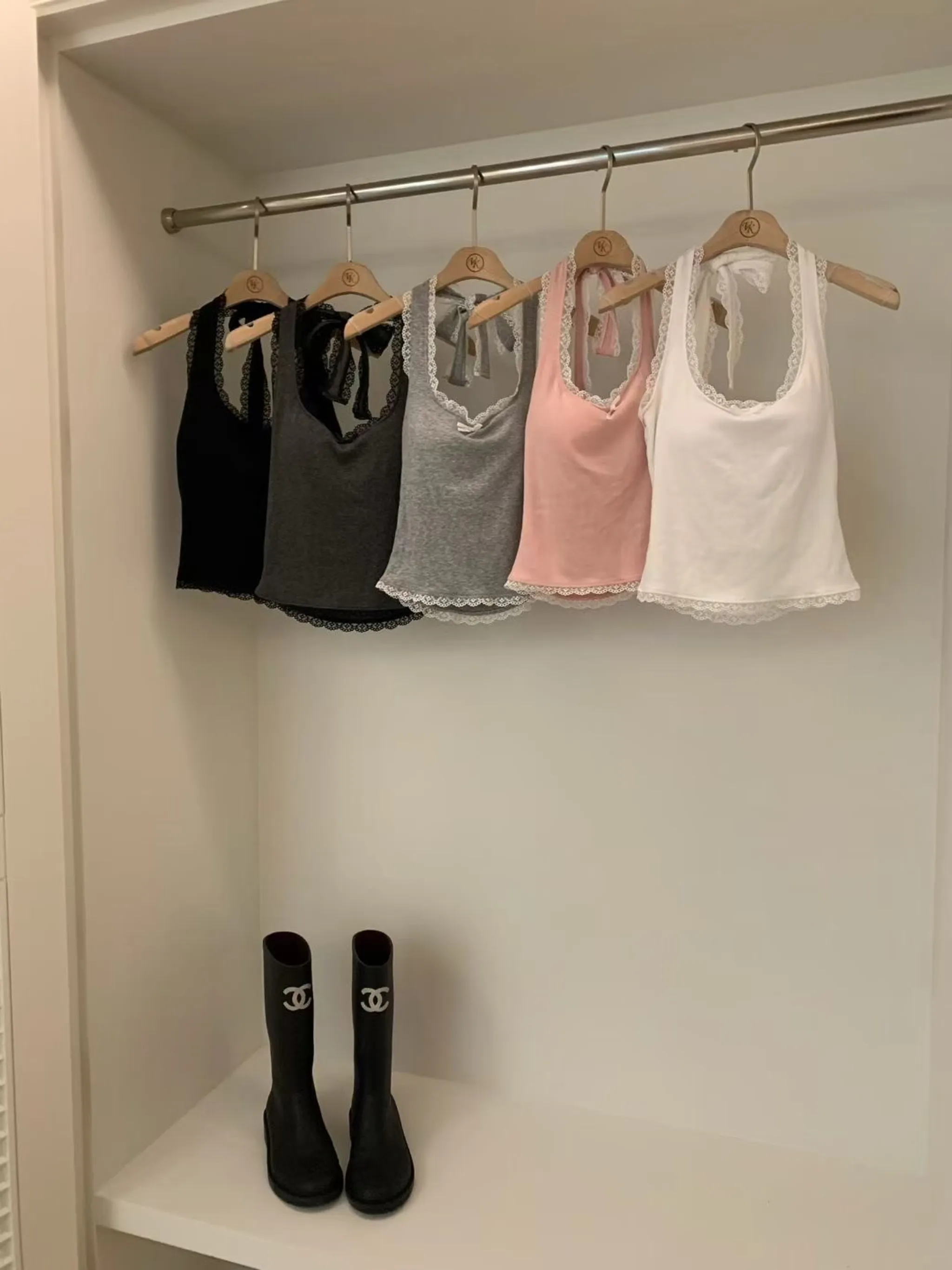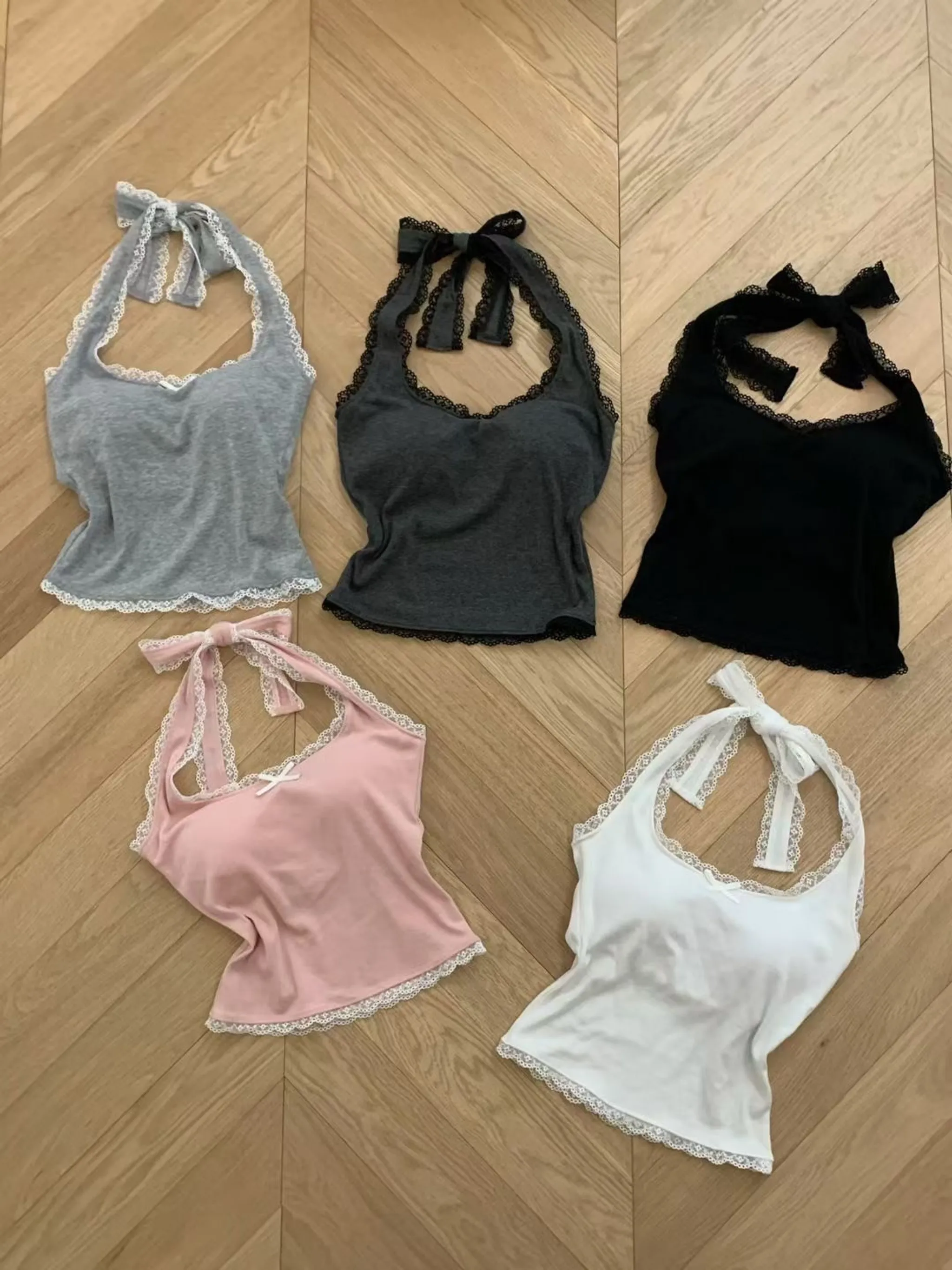 蕾絲拼接掛脖美背罩杯背心|5色