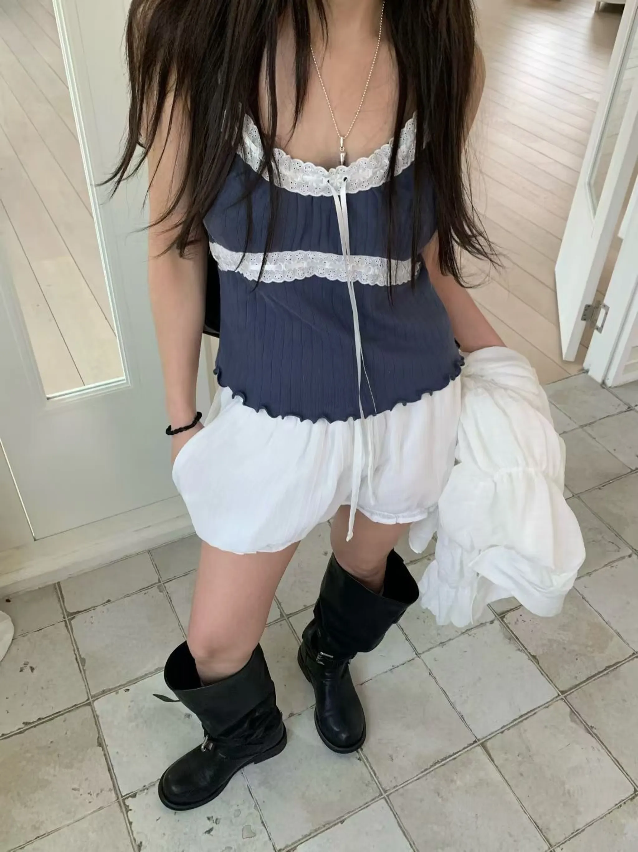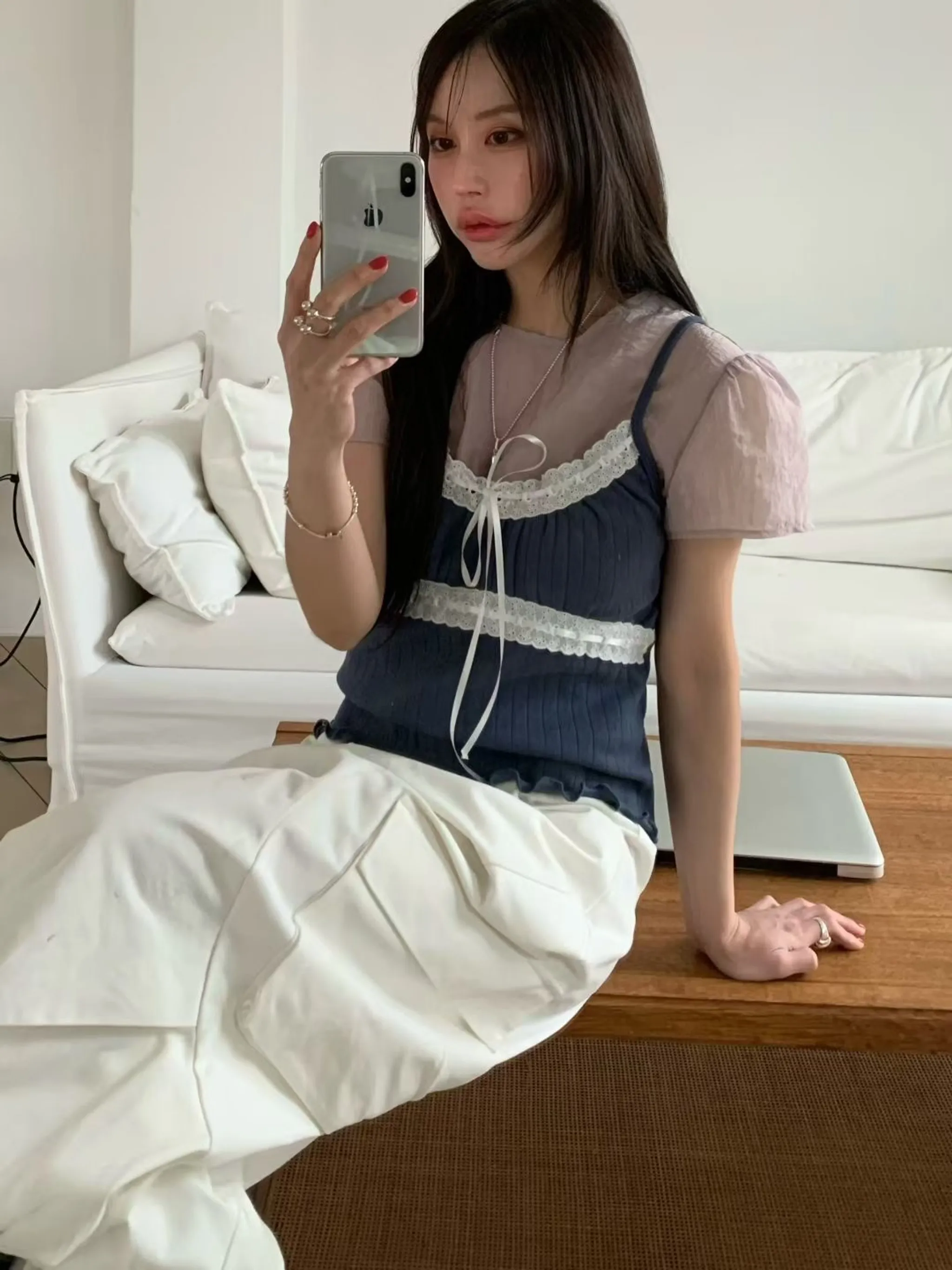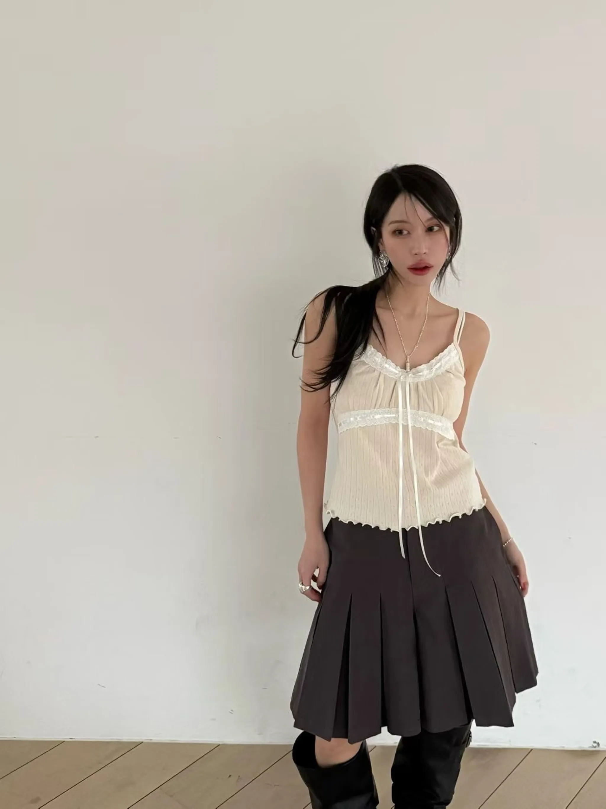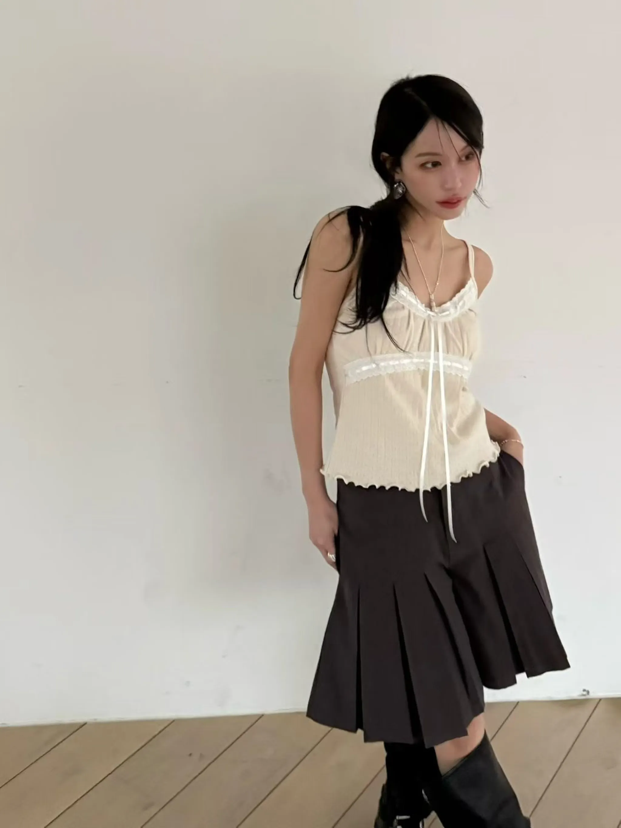 精緻鏤空蕾絲蝴蝶結吊帶上衣|3色