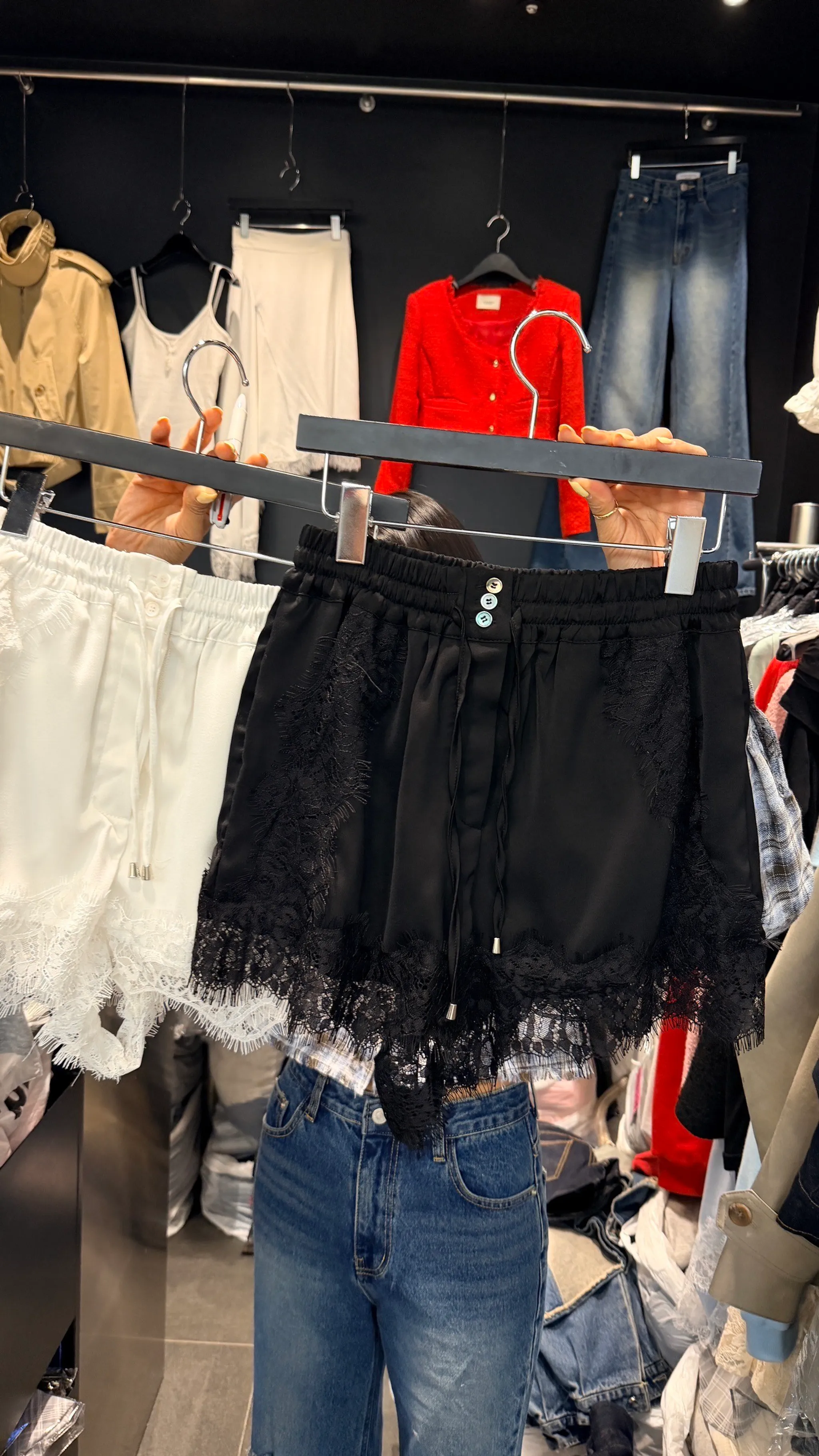 光澤感睫毛蕾絲短褲|2色