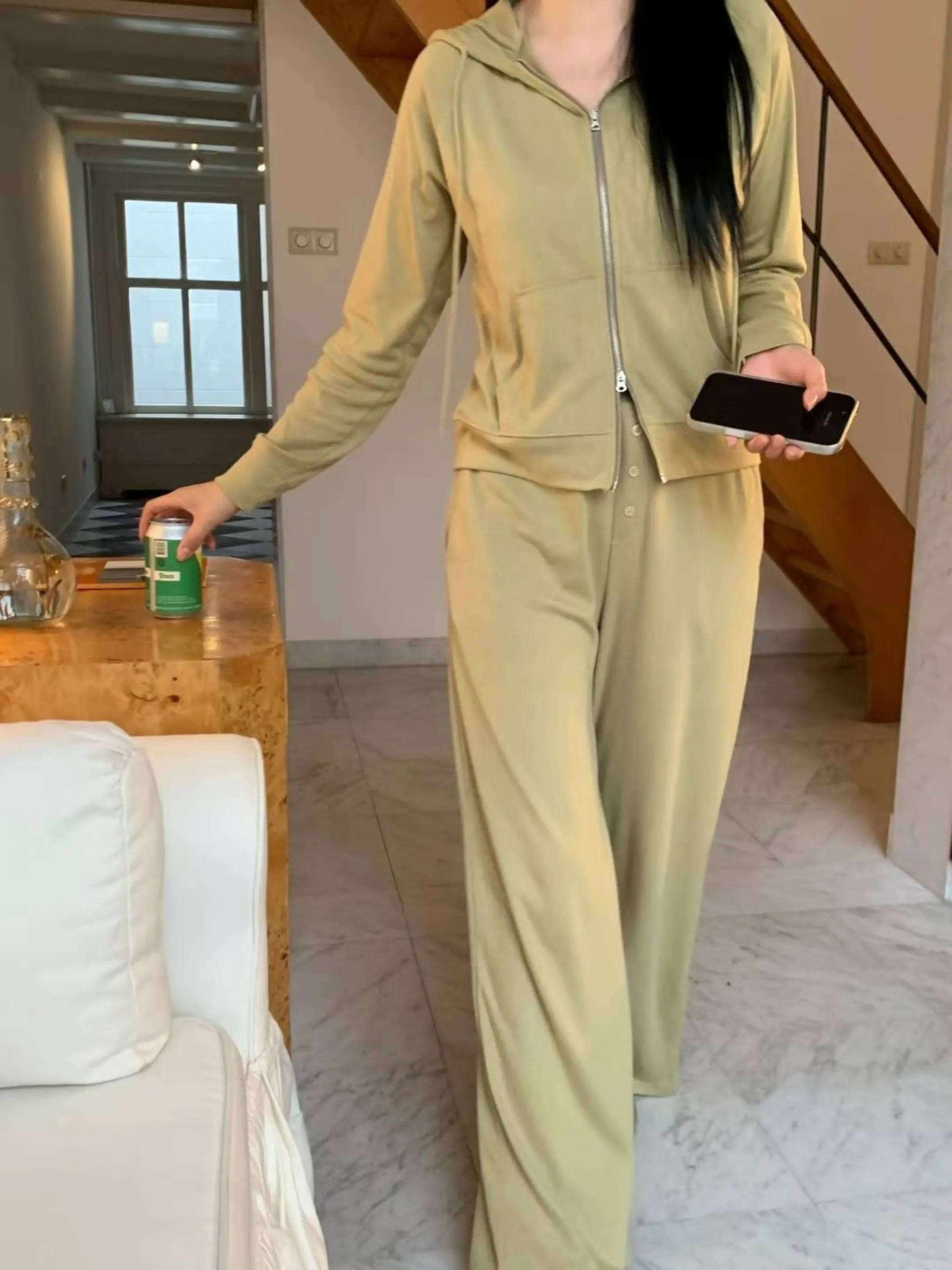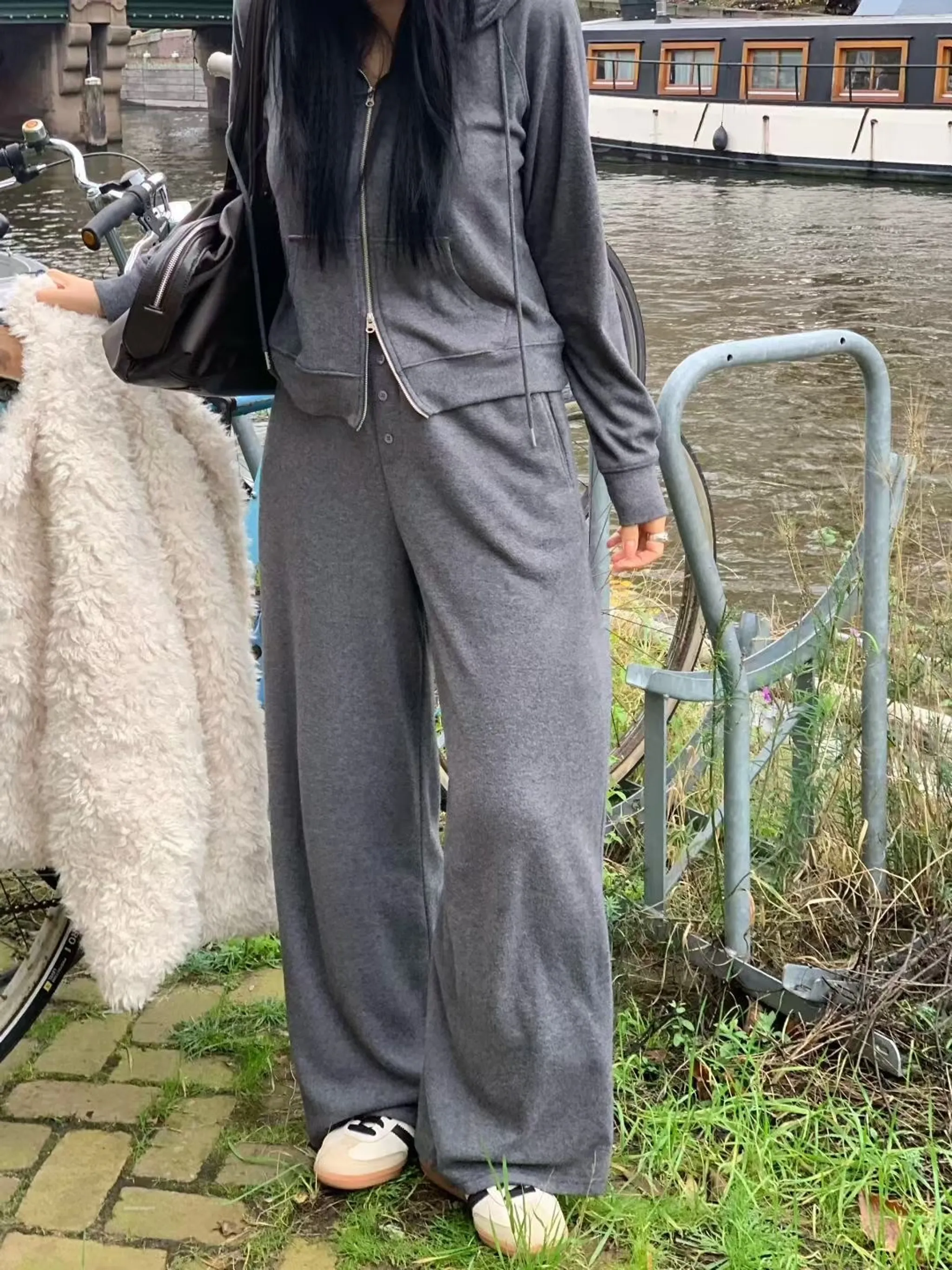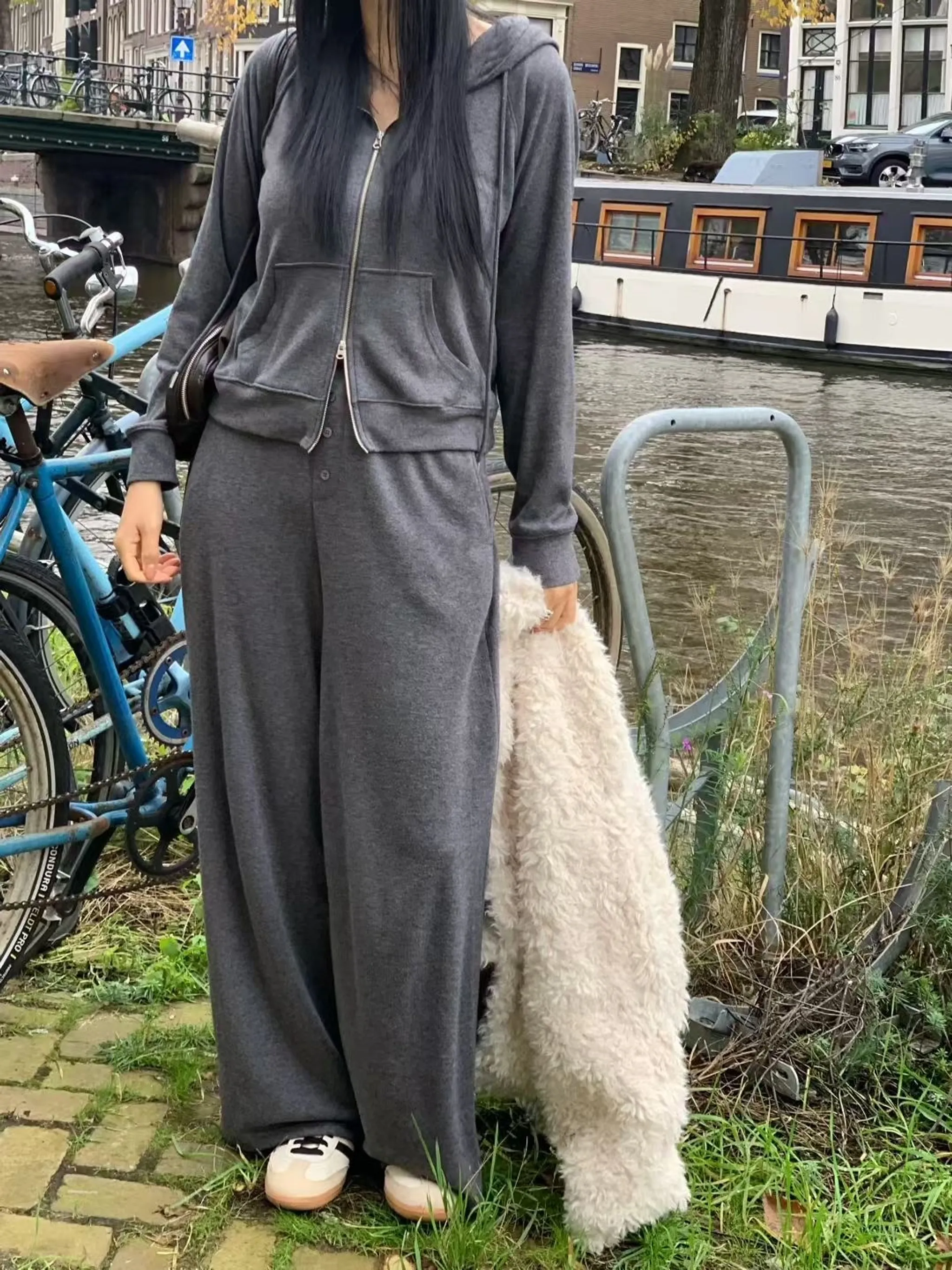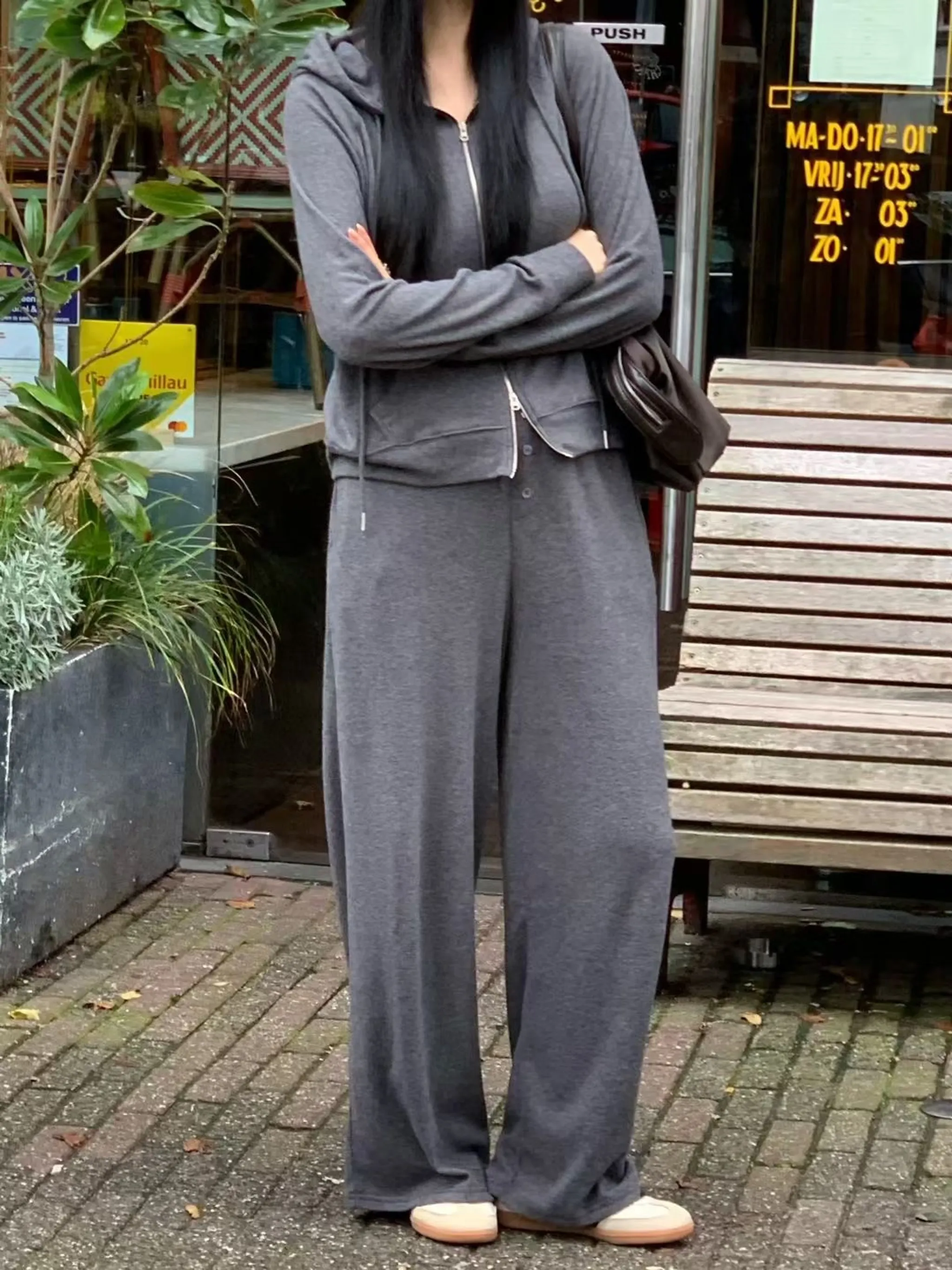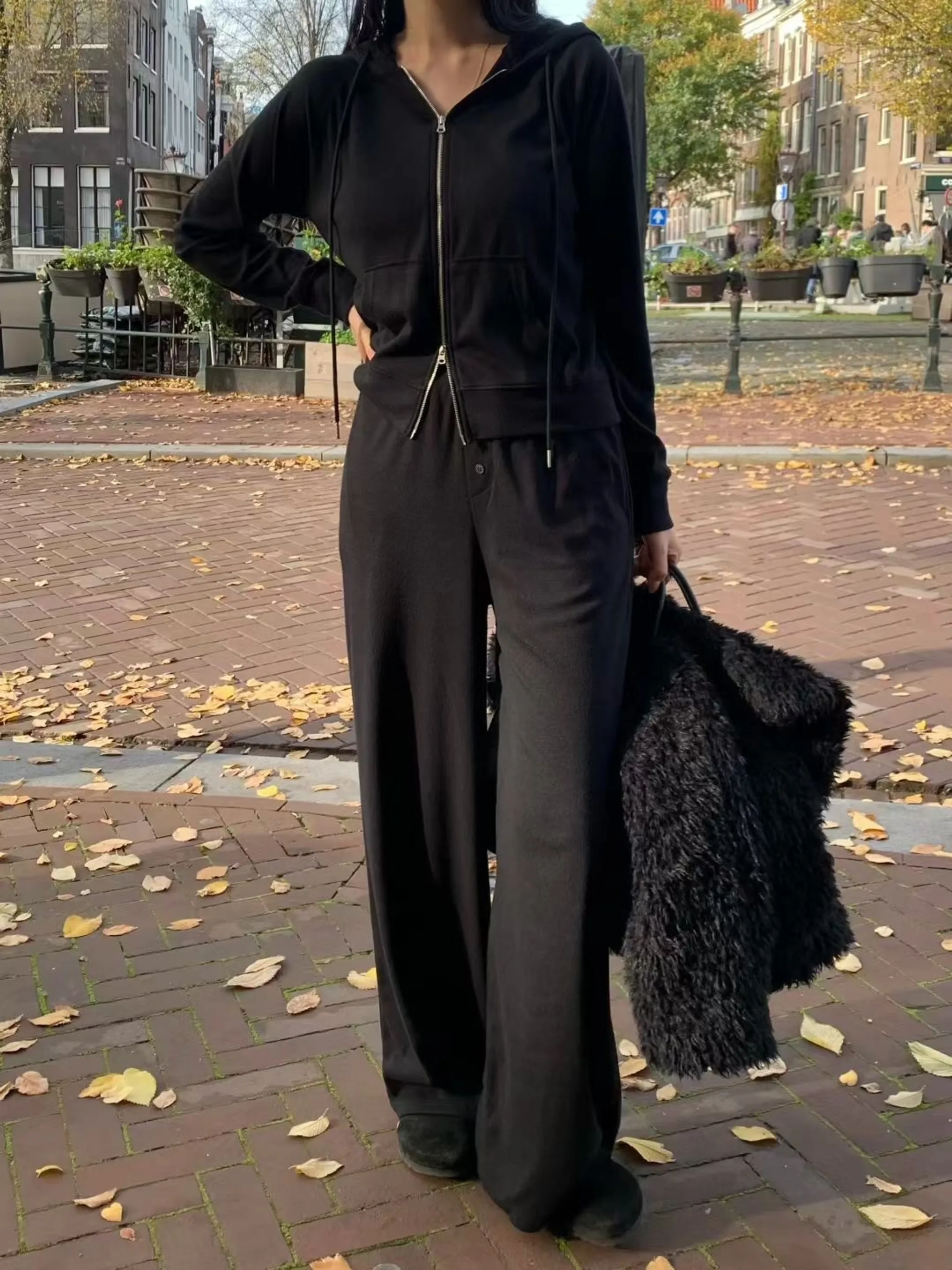 造型雙拉鏈連帽外休閒套裝|3色