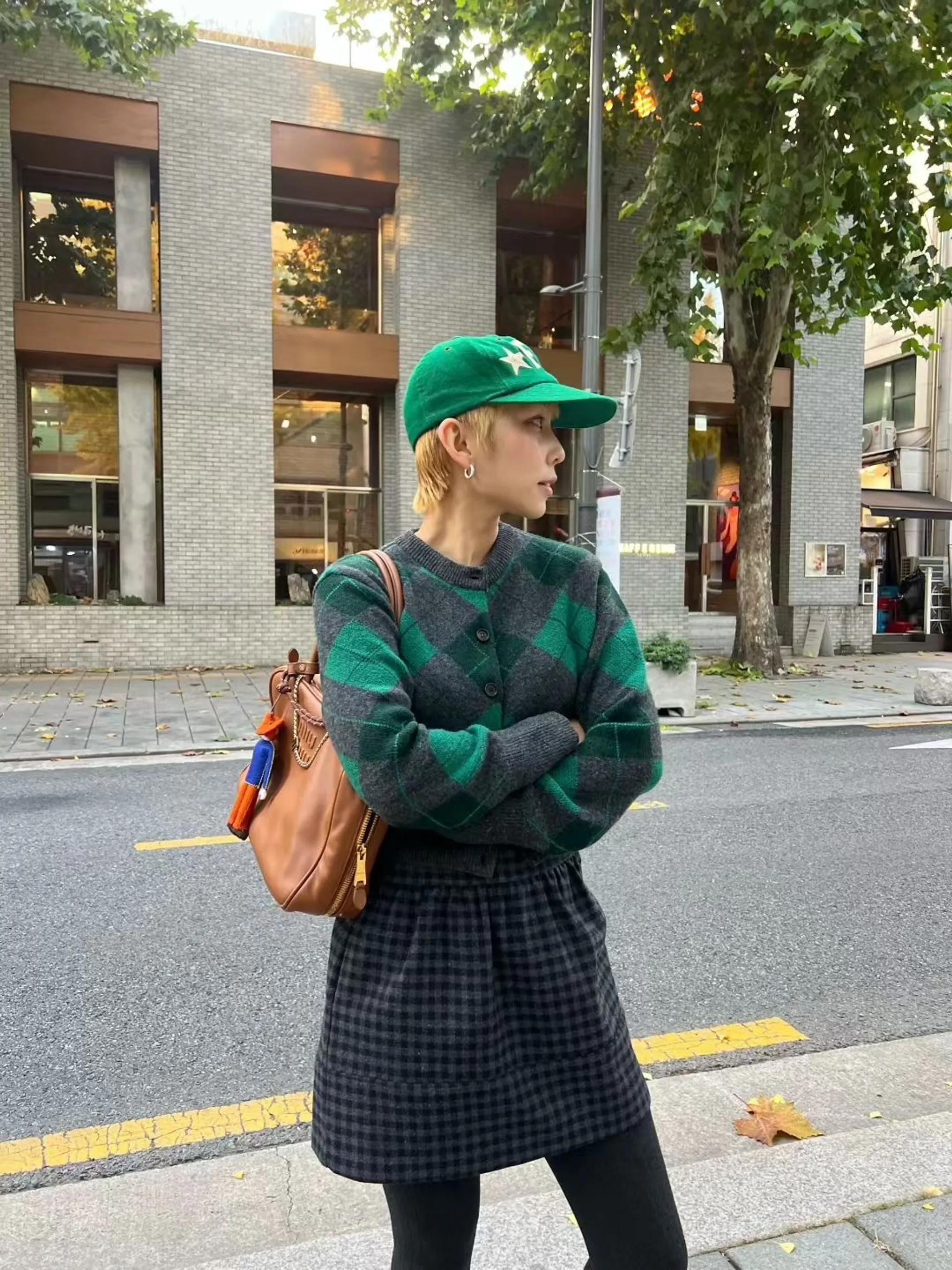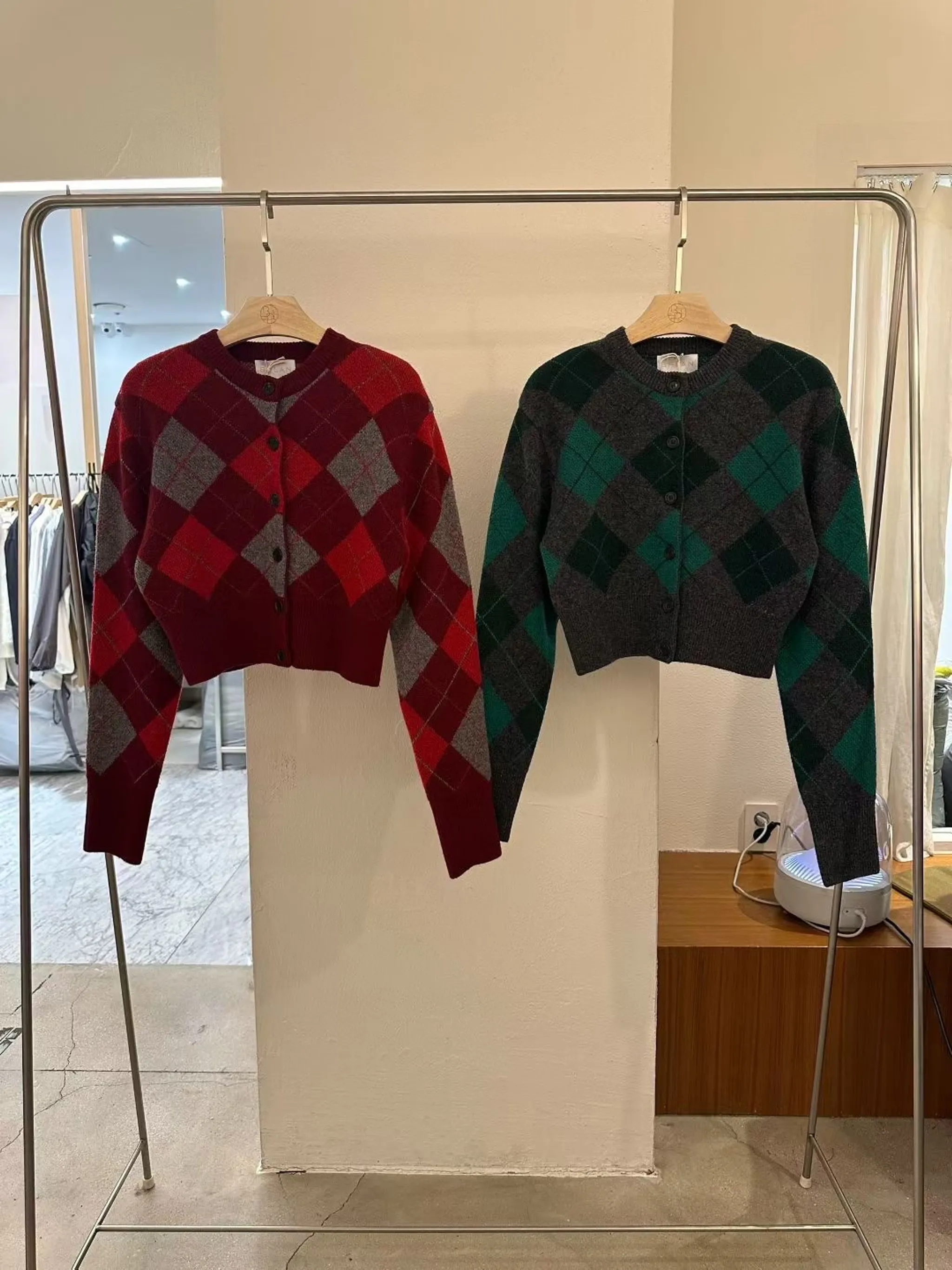 復古菱格紋短版針織外|2色