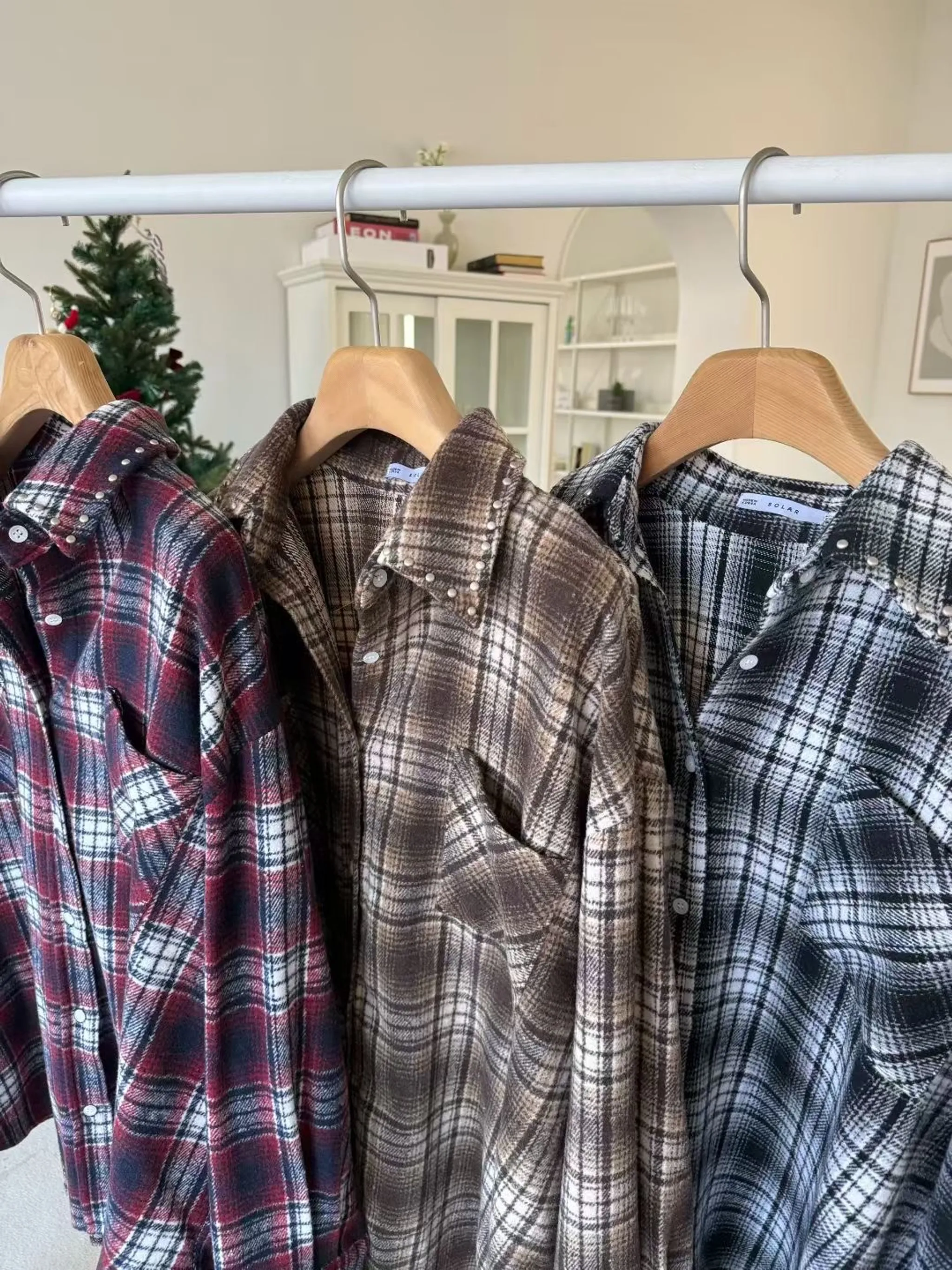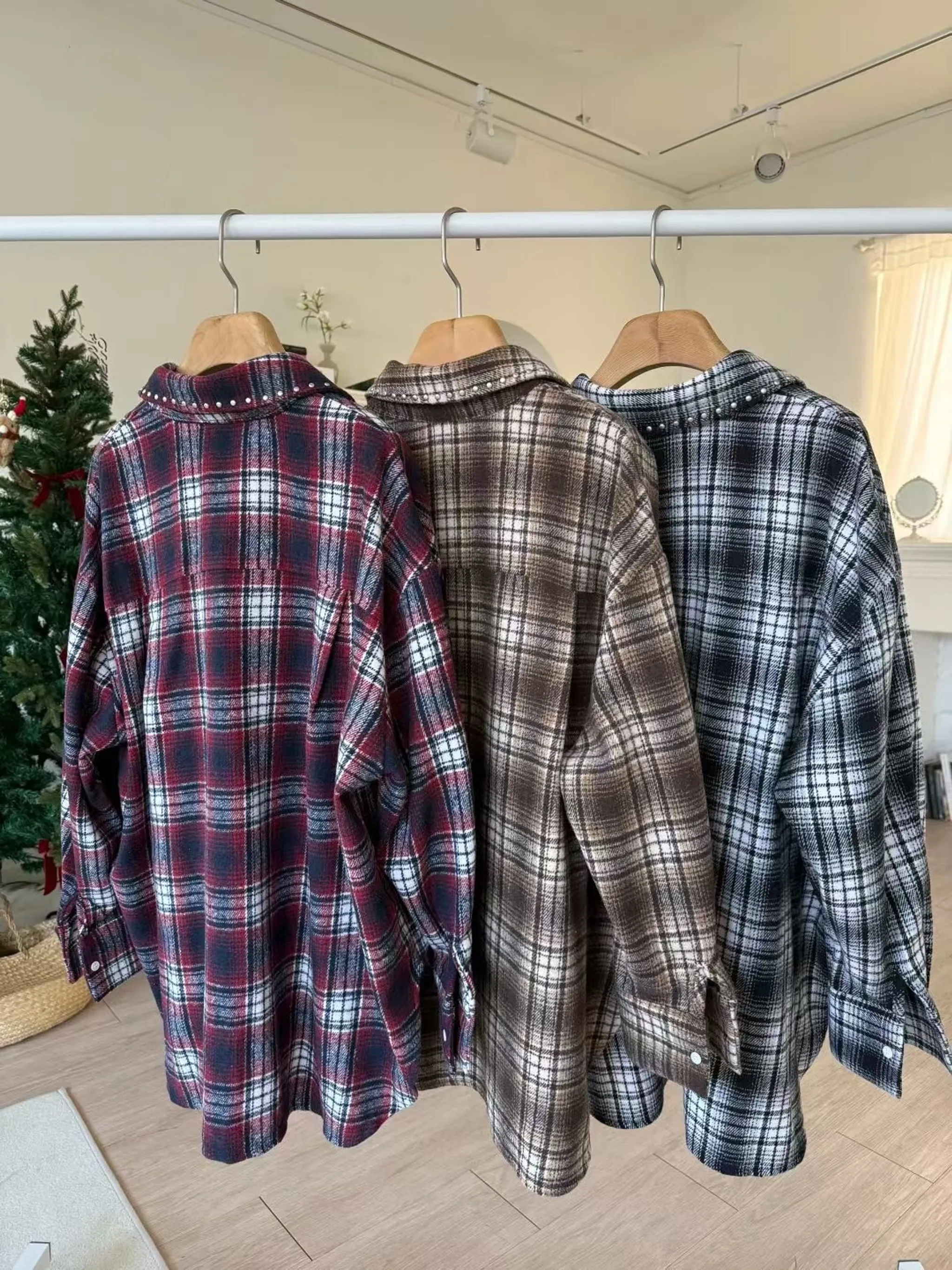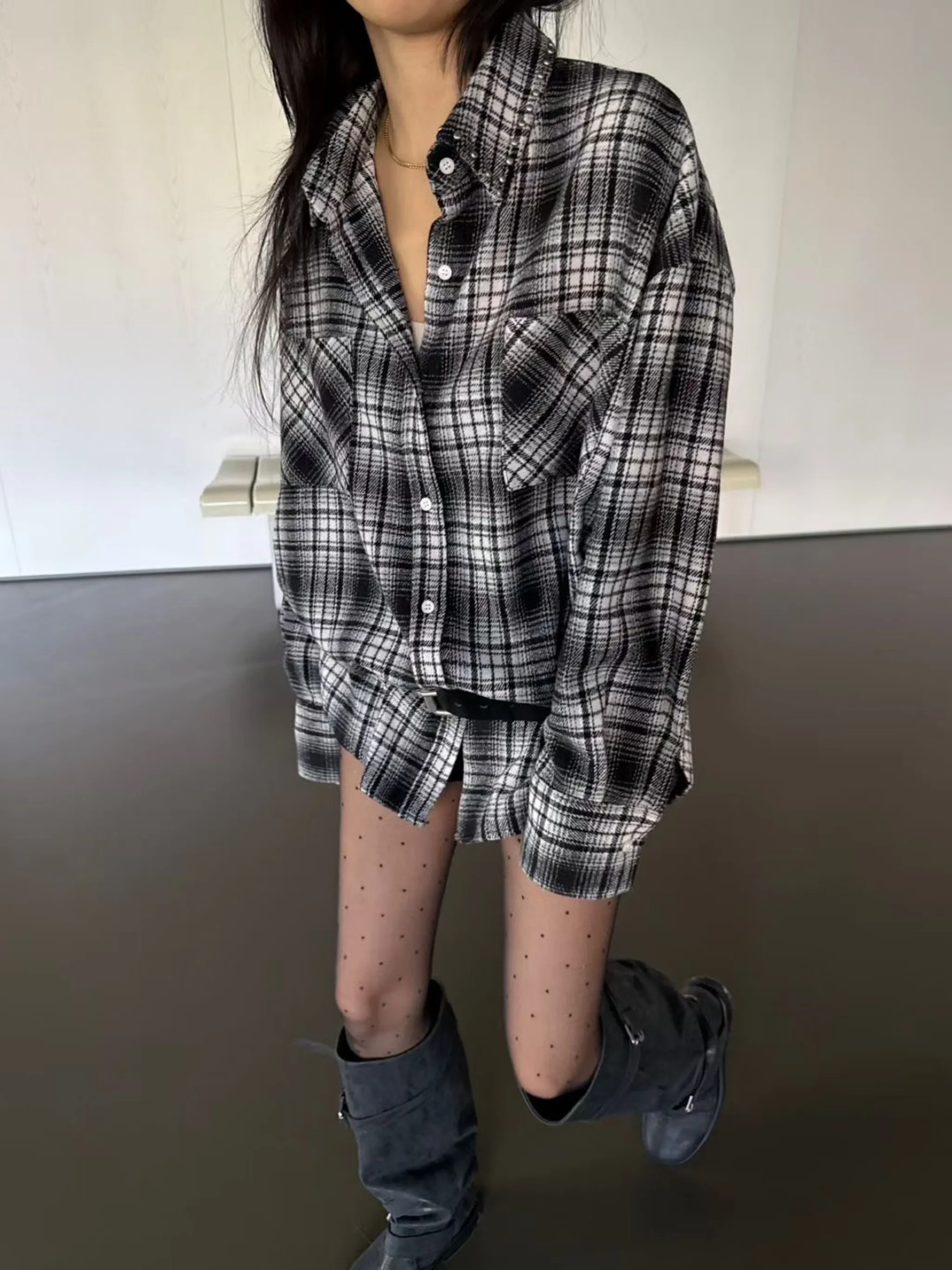 個性鉚釘格子襯衫|3色