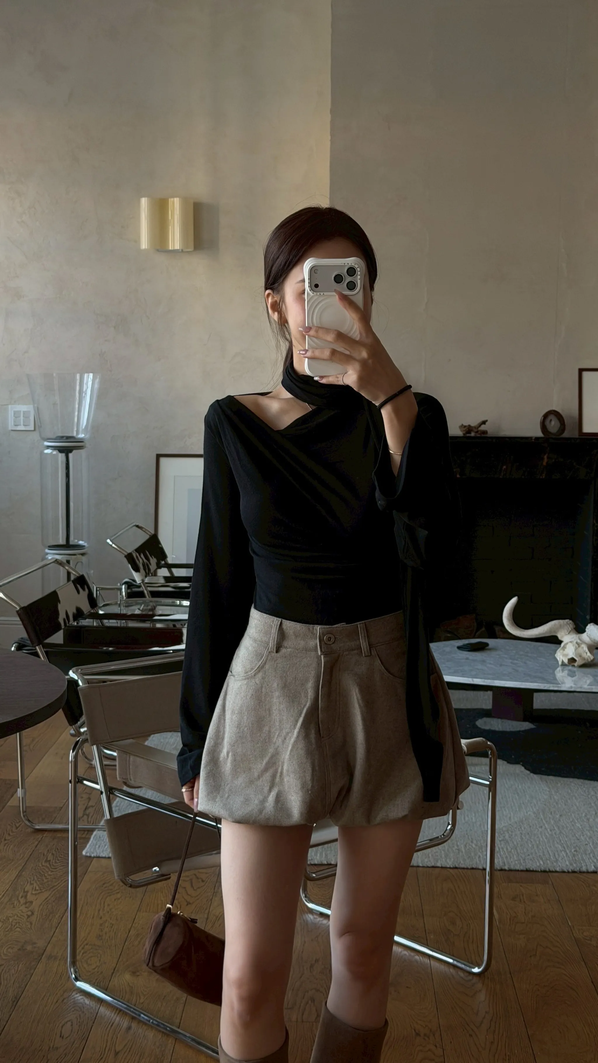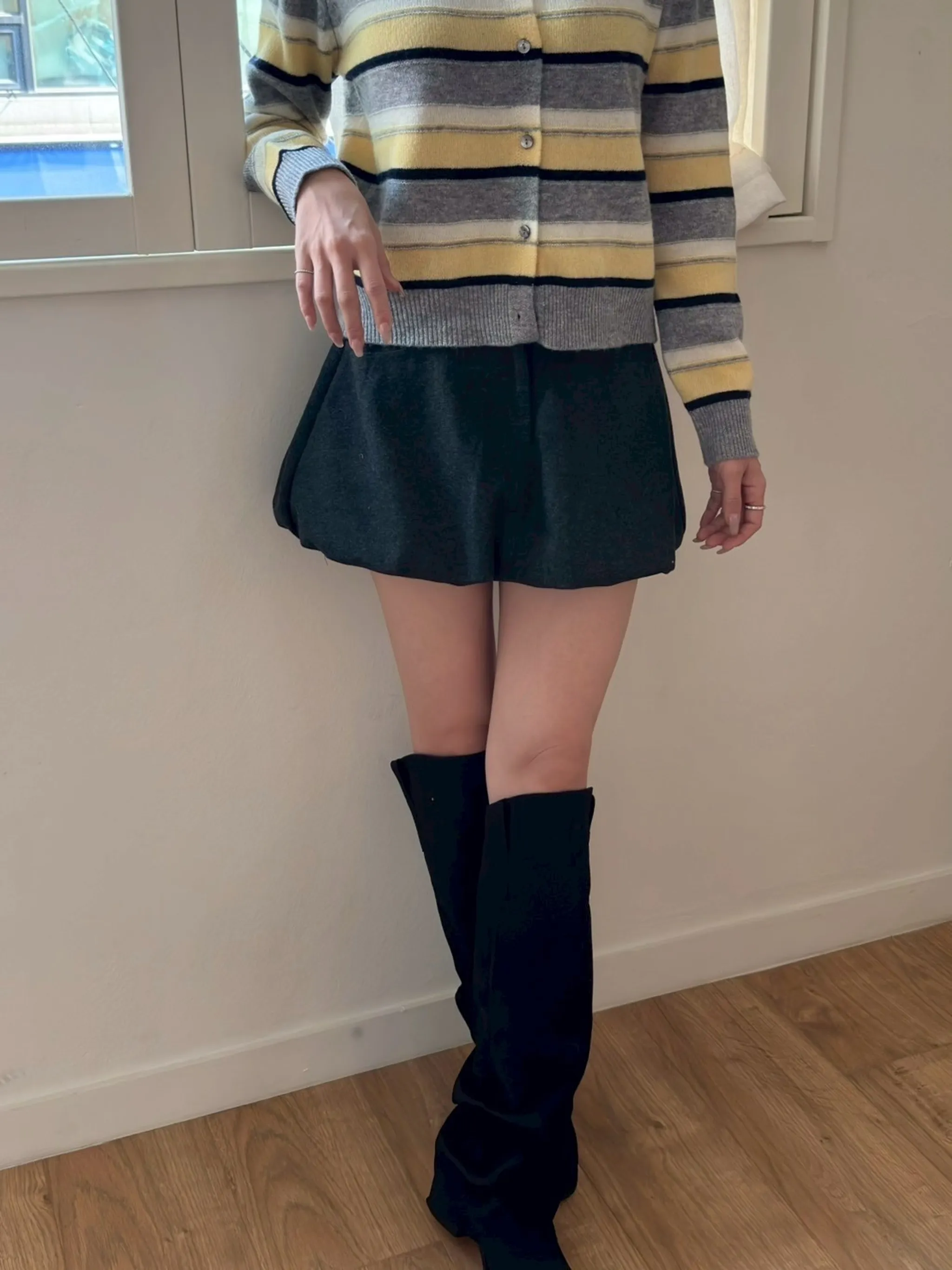 斜紋花苞褲裙|2色(羊毛30%)