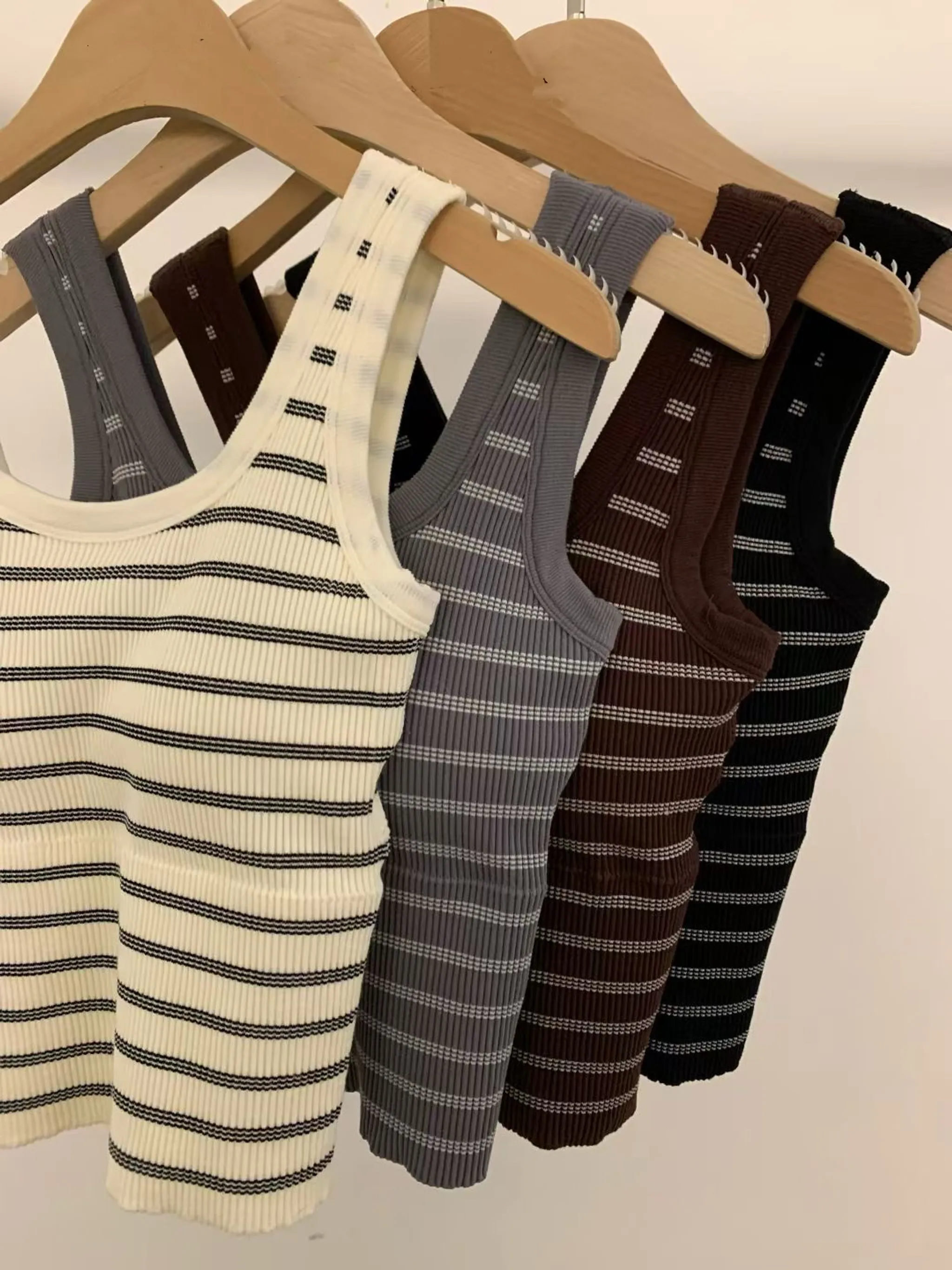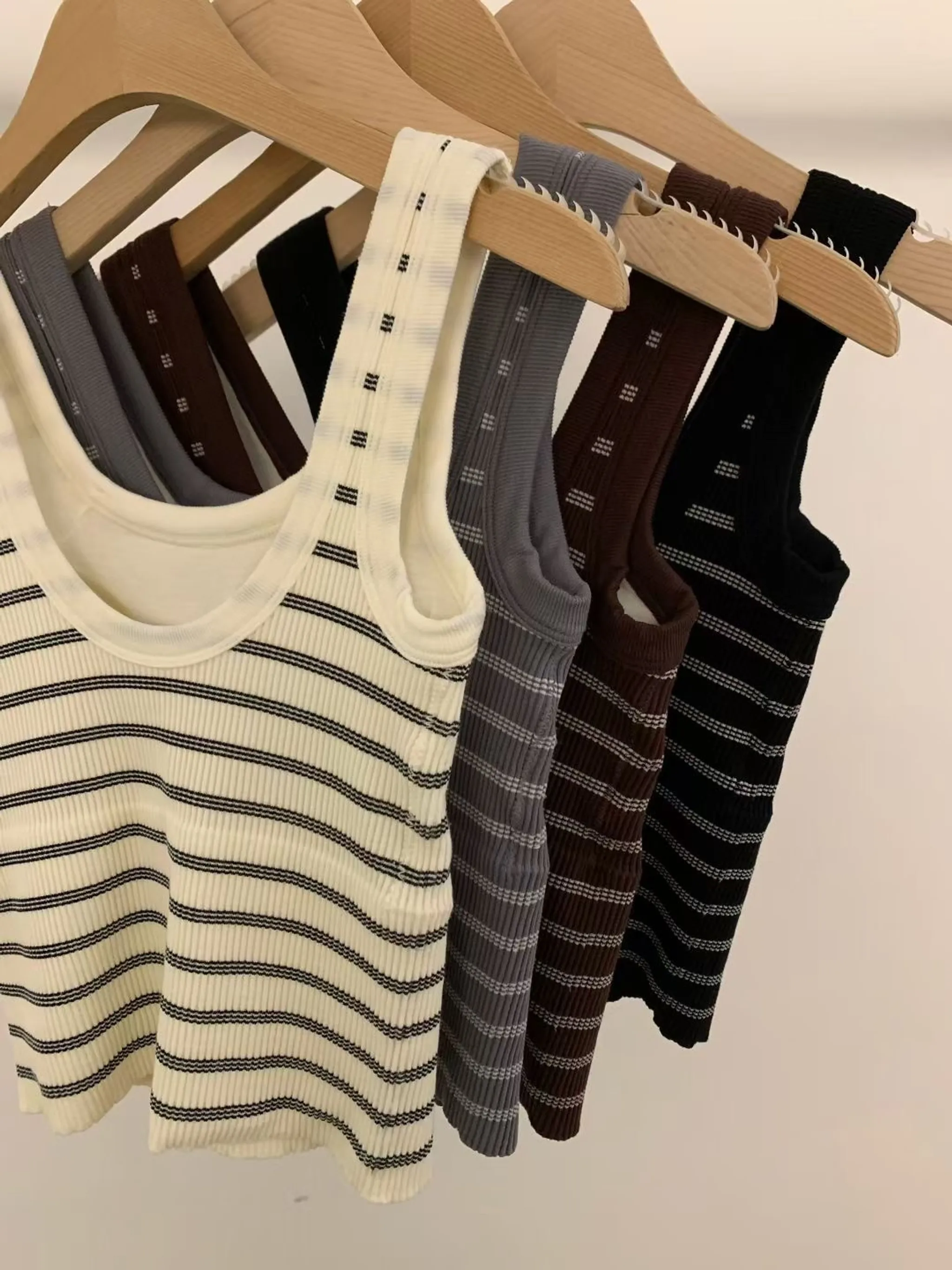 自帶胸墊!寬帶顯瘦坑條背心|4色